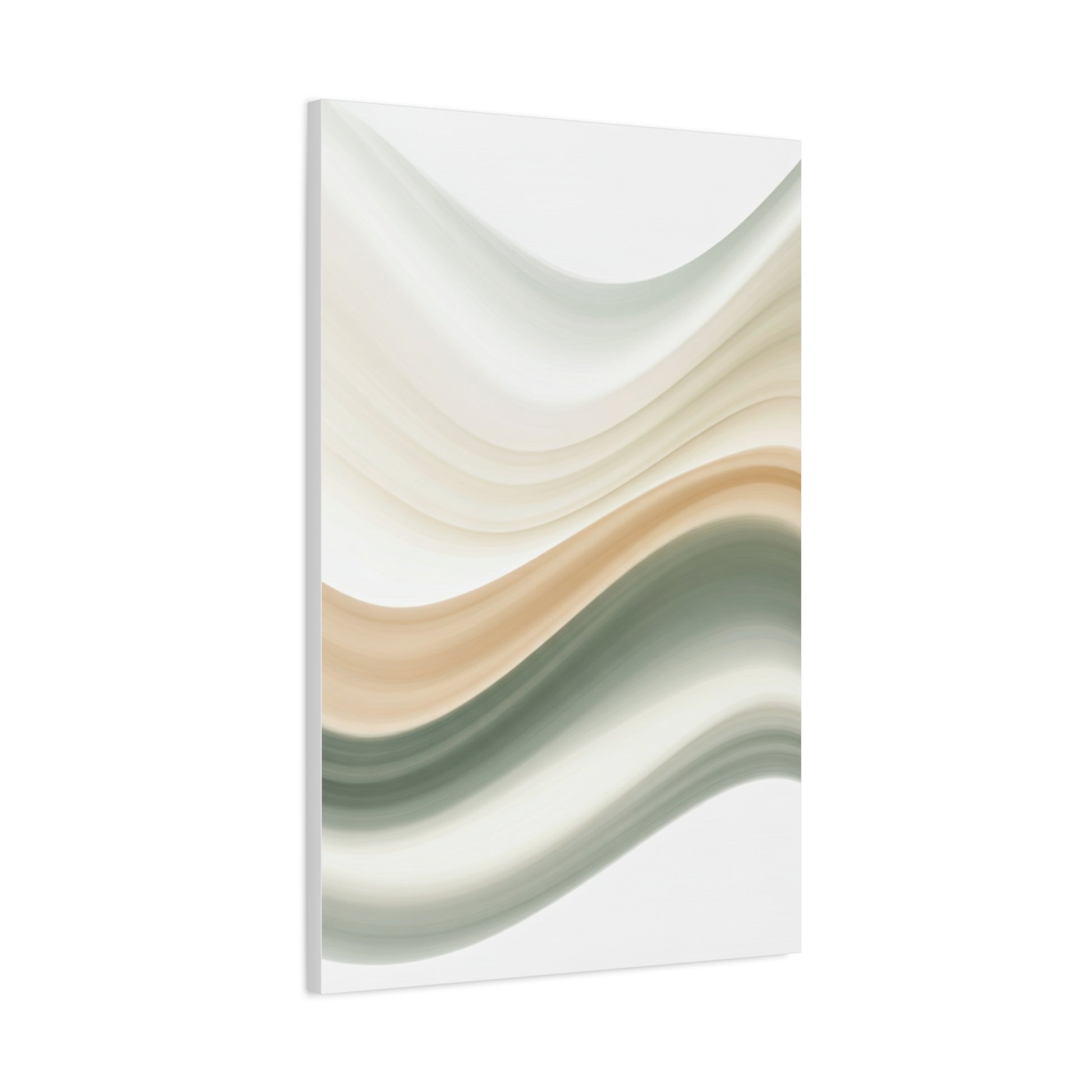 A smooth and flowing abstract design blending soft beige, cream, and muted green tones in elegant wave-like patterns. The harmonious movement and minimalist palette create a sophisticated atmosphere, ideal for modern interiors seeking calm and balance.