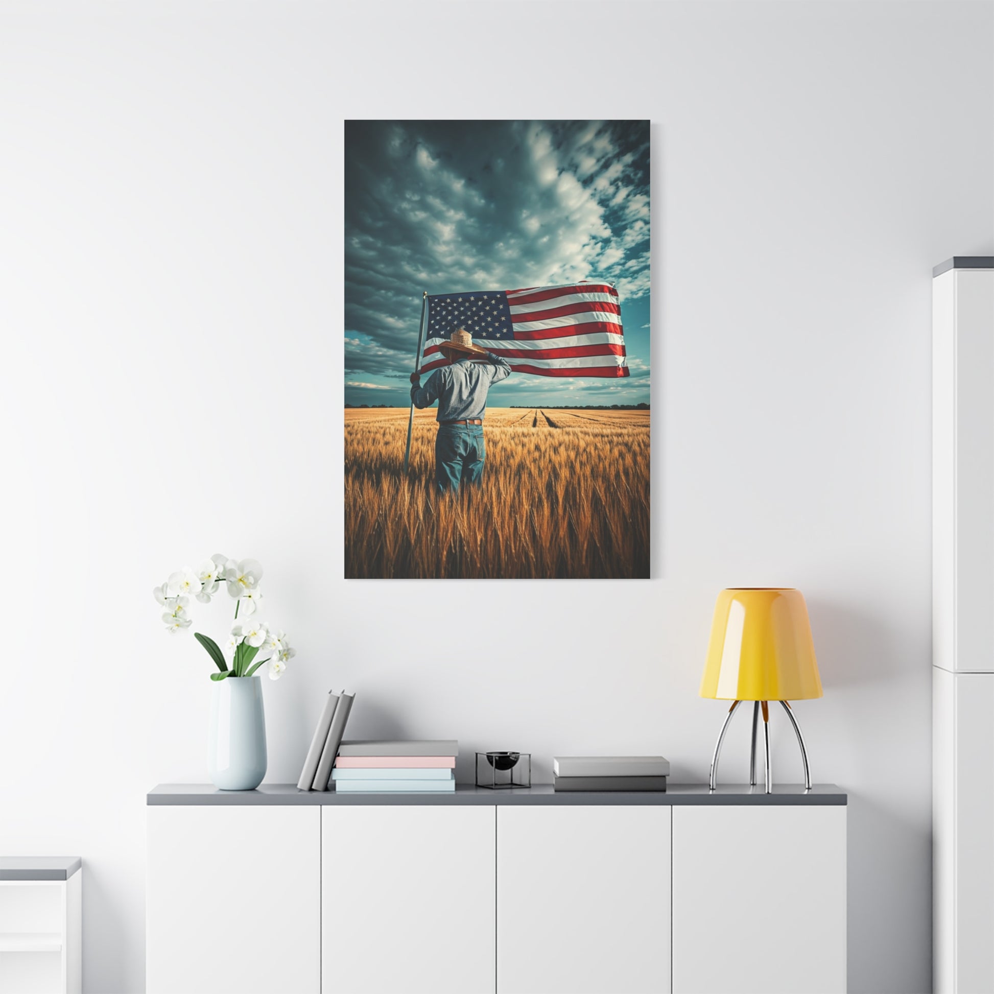 American Flag Over Golden Fields Wall Art & Canvas Prints