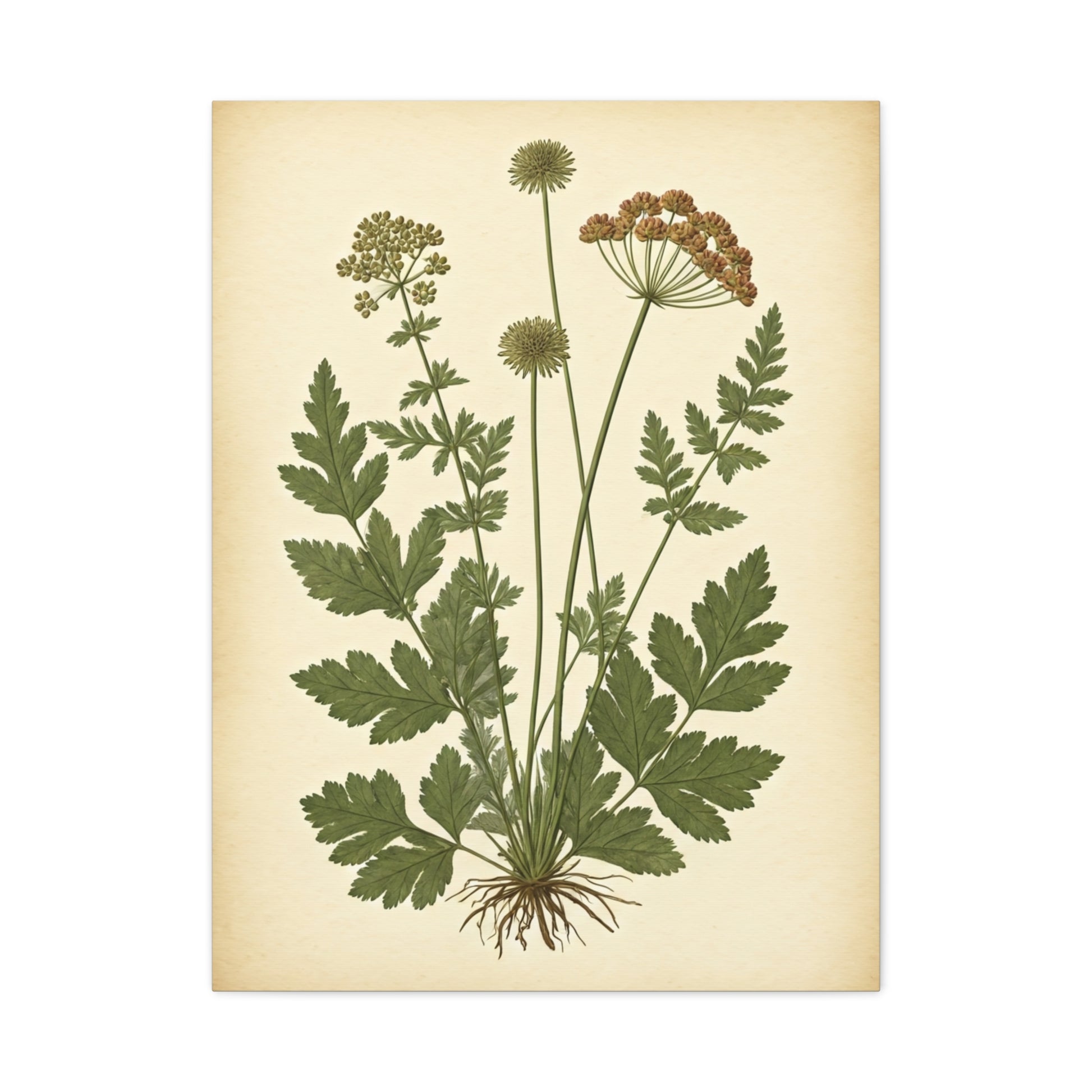 This artwork showcases a graceful composition of herbs and foliage illustrated with meticulous detail. Subtle variations in leaf shape and texture create depth while maintaining a soft, neutral palette. Inspired by old-world natural studies, it brings a sense of calm and authenticity to any space. Perfect for kitchens, studios, or earthy interiors. A refined blend of nature, history, and artistic precision.