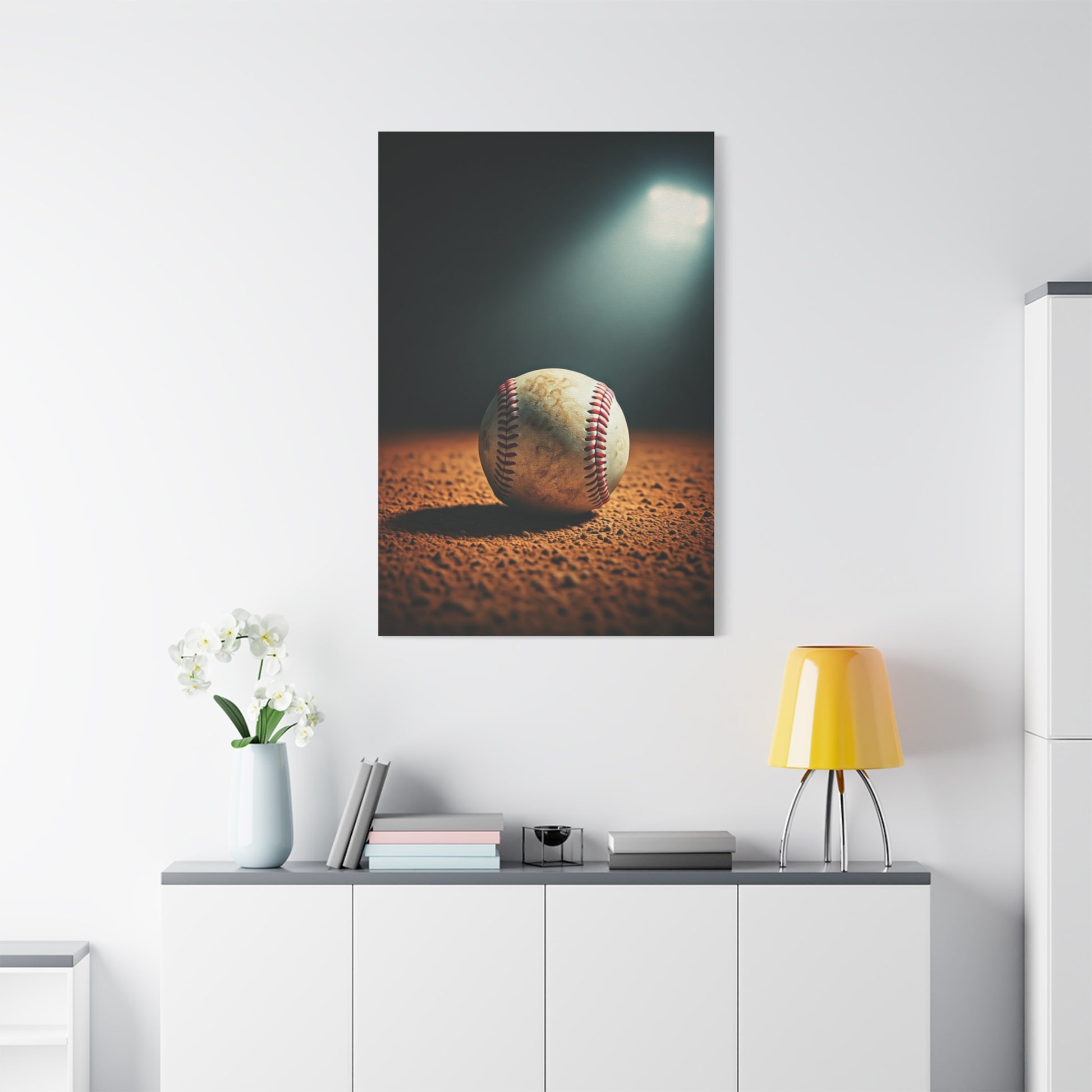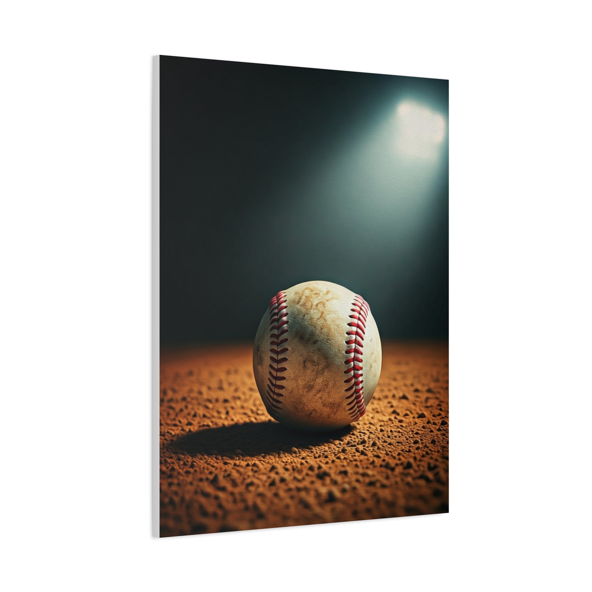 Baseball on Dirt Field Under Stadium Light Wall Art & Canvas Prints