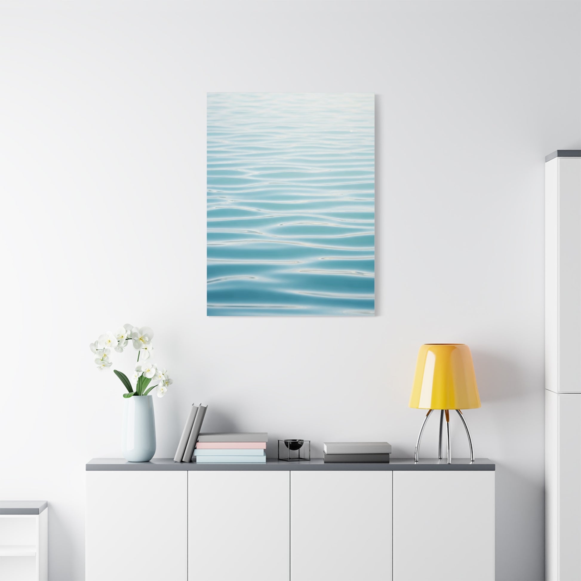 This minimalist ocean-inspired artwork features soft rippling water illuminated by gentle light. The smooth texture and tranquil blue palette create depth while maintaining a clean, modern aesthetic. Ideal for bathrooms, bedrooms, or contemporary spaces seeking a refreshing and peaceful visual element.