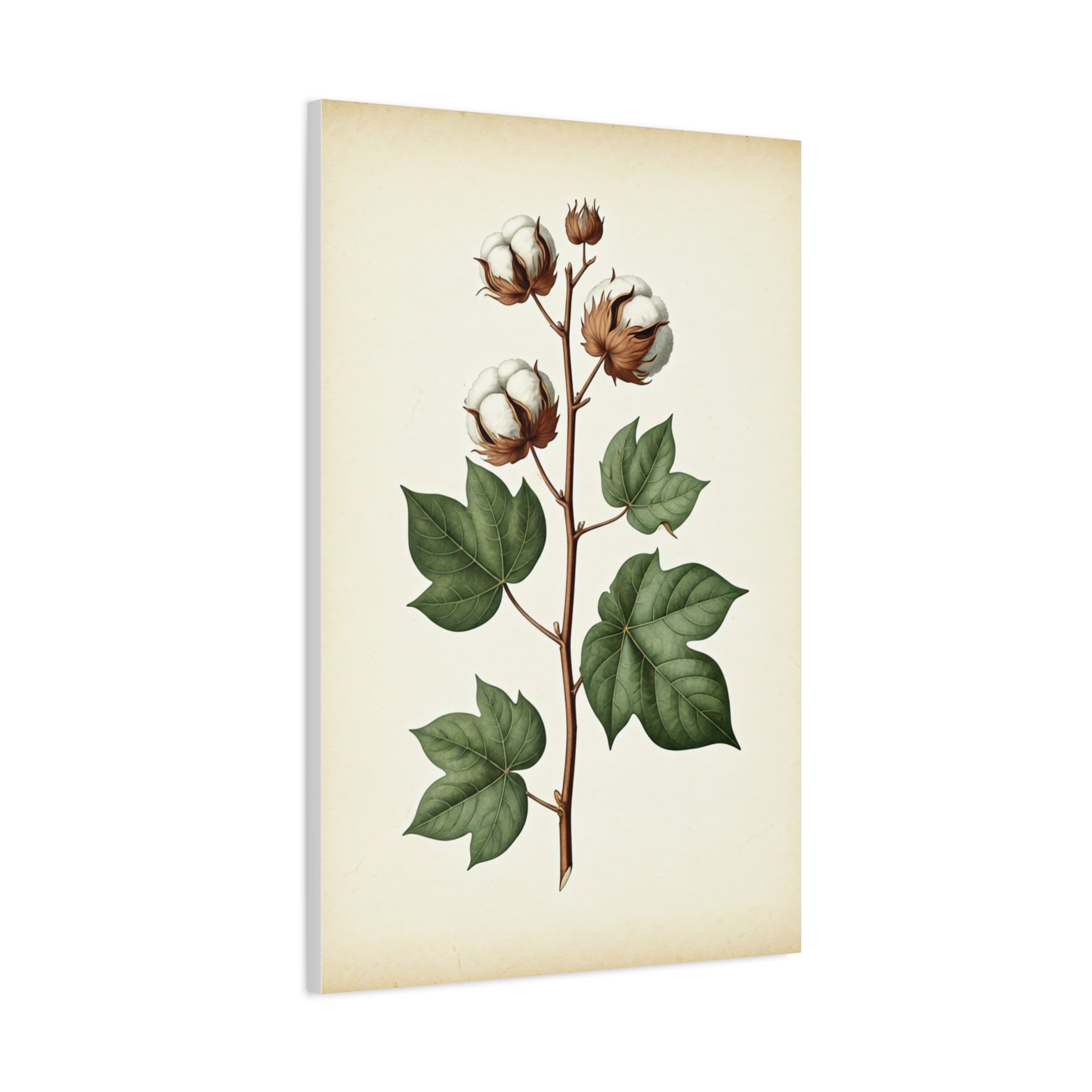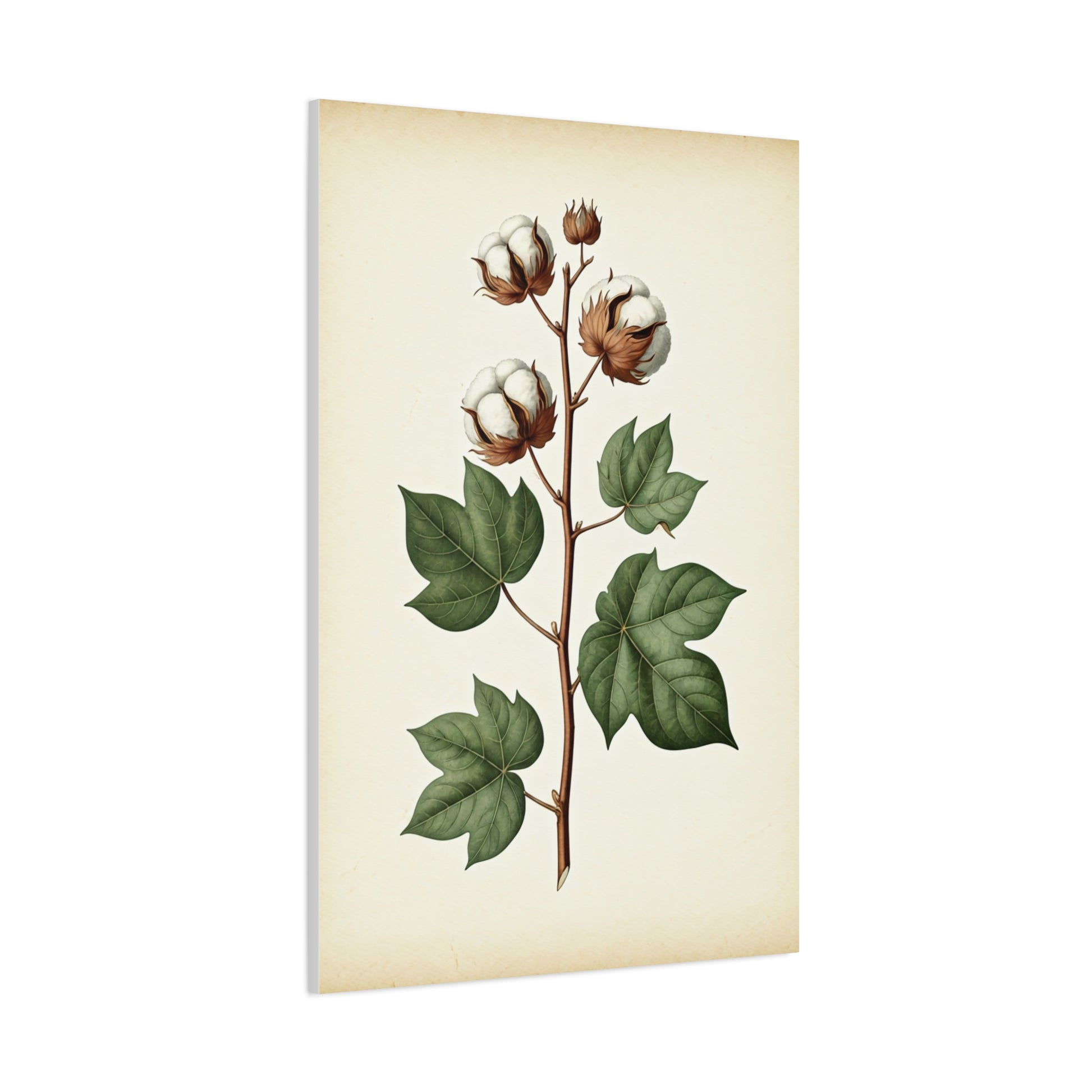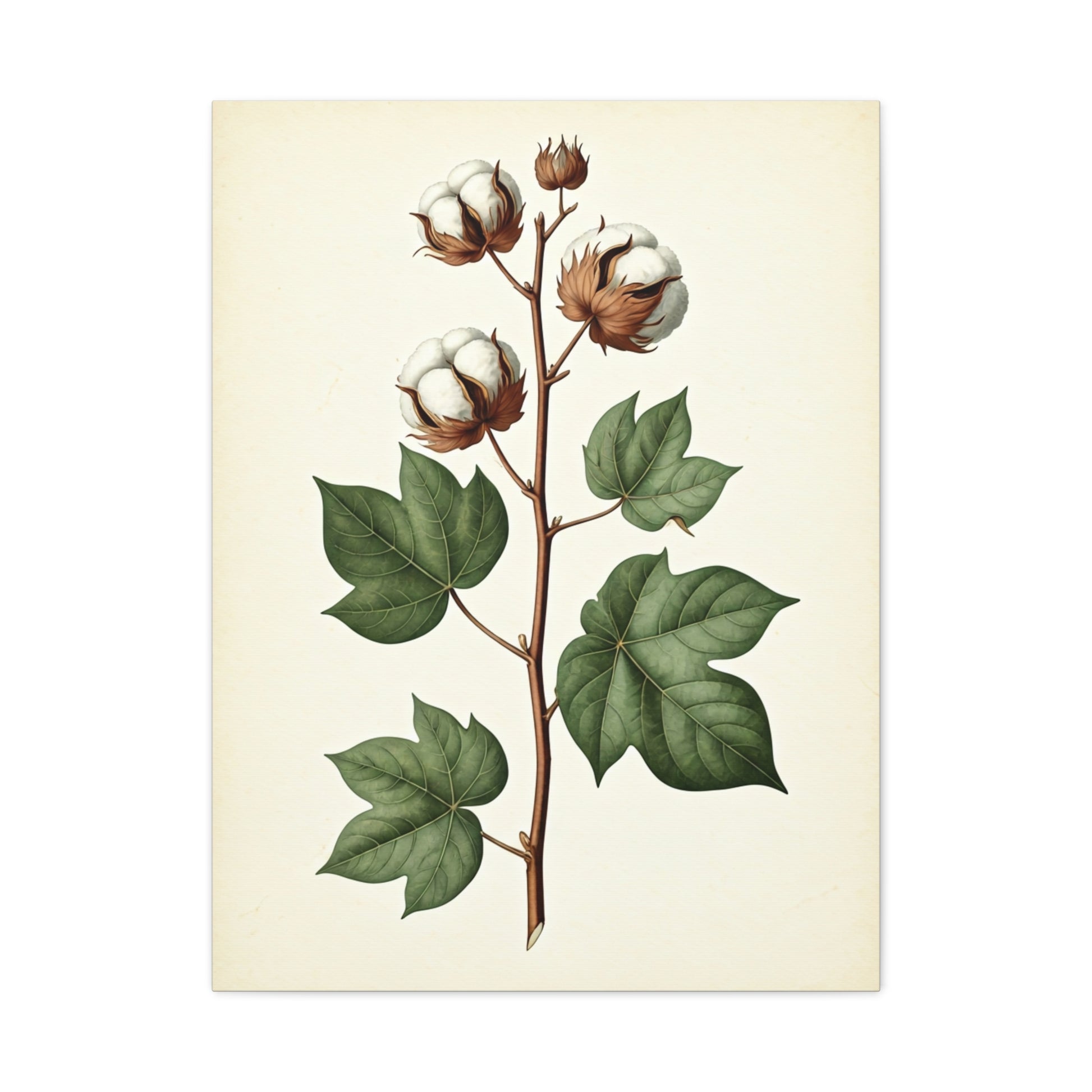 This elegant artwork showcases the cotton plant in full detail, from soft white bolls to rich green leaves. Rendered in a vintage illustration style, it reflects the harmony between natural growth and artistic craftsmanship. The muted palette and balanced composition add warmth without overwhelming the space. Ideal for farmhouse décor, creative studios, or nature-inspired interiors. The piece brings a sense of heritage and authenticity to any wall. A timeless print that blends softness, structure, and tradition.