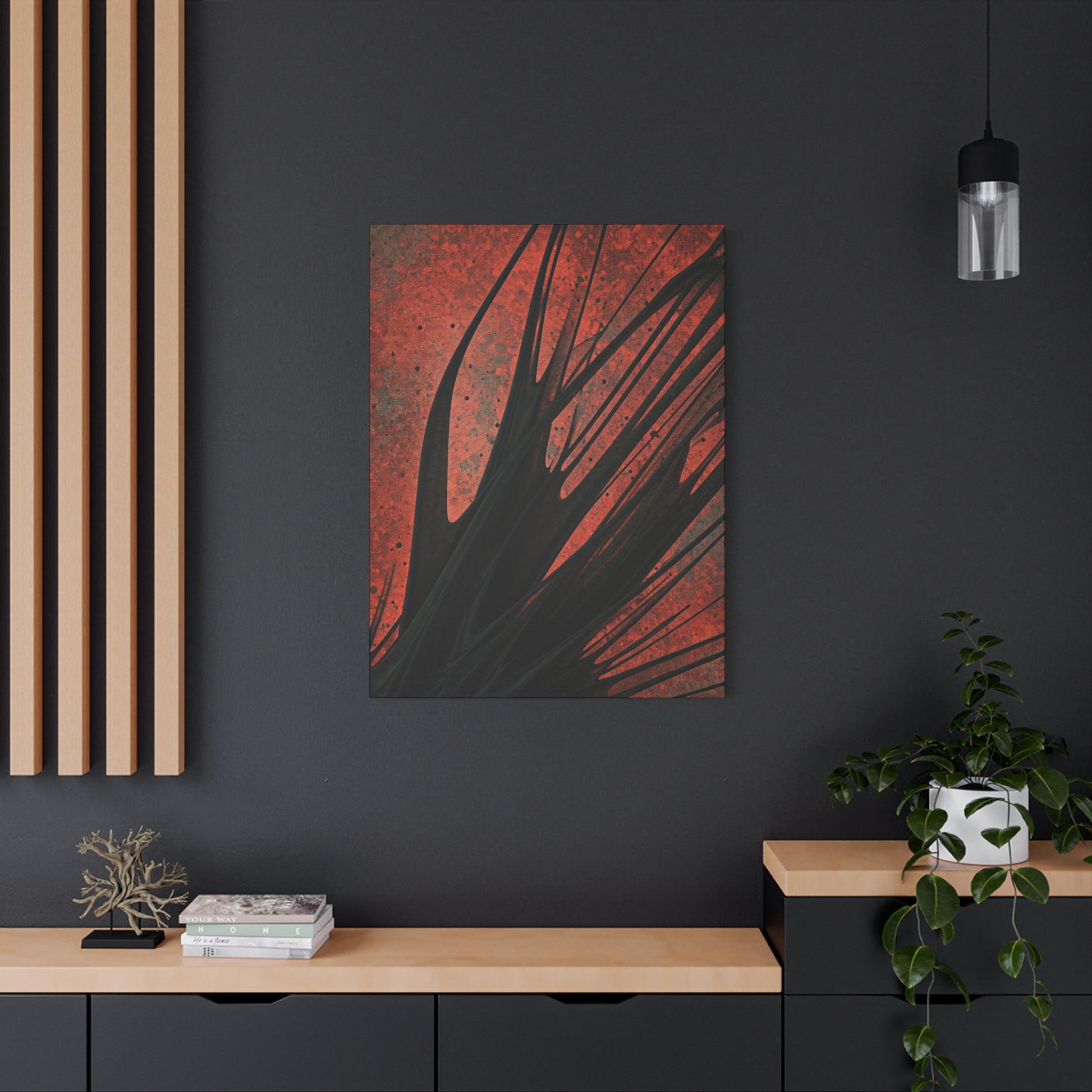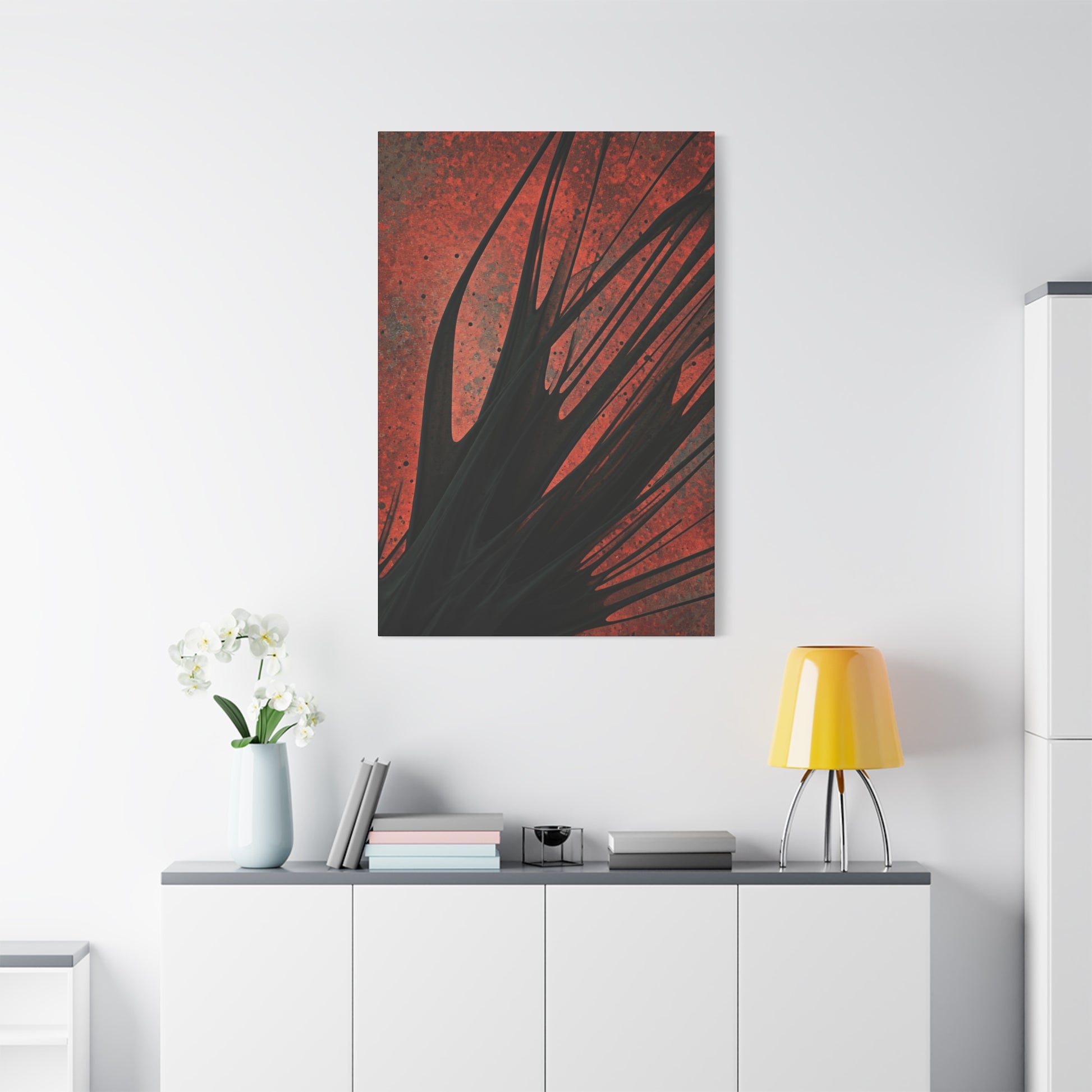 This bold abstract wall art features sweeping black forms cutting through a textured crimson backdrop, creating a powerful sense of motion, tension, and depth. The sharp contrasts and fluid lines evoke emotion, intensity, and raw energy, making the artwork feel expressive and dramatic. Its modern aesthetic works beautifully as a statement piece in contemporary interiors, studios, or creative spaces. This canvas print brings visual impact and artistic edge, perfect for walls that demand attention without overwhelming the room.