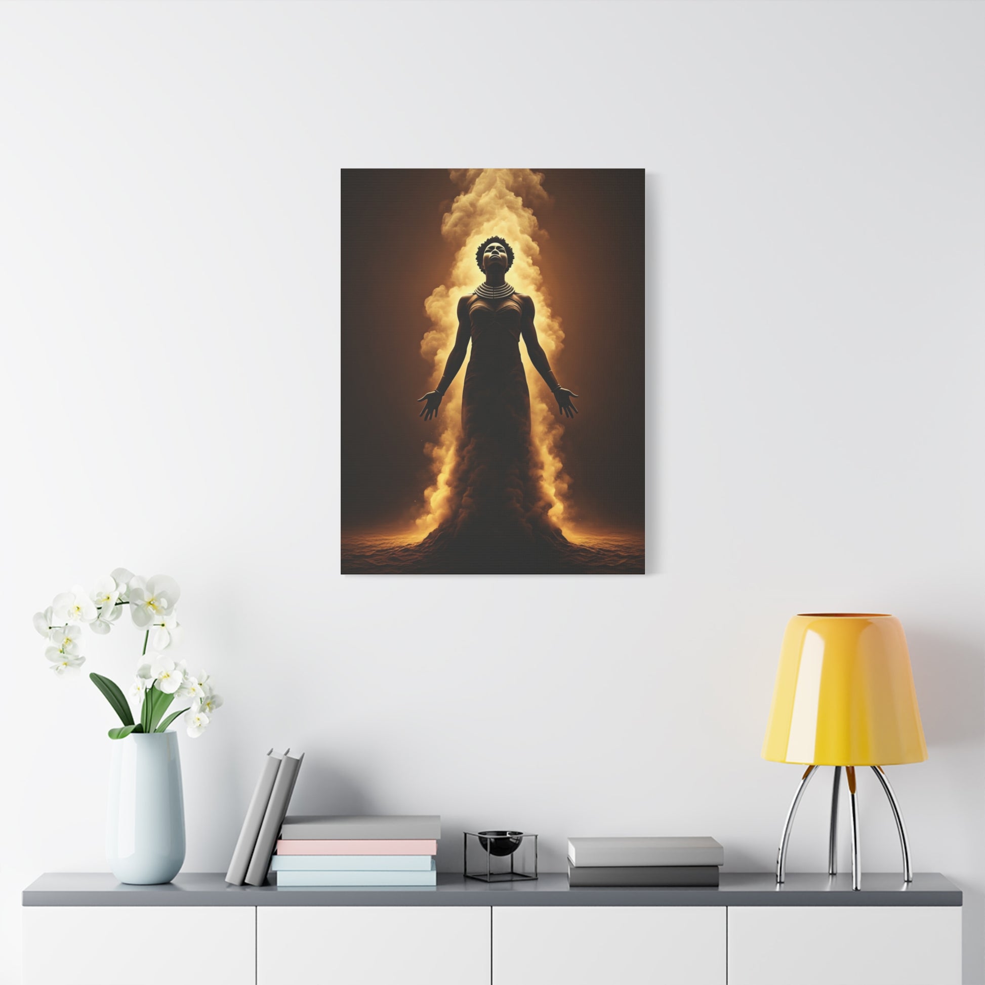 This breathtaking artwork captures the essence of royalty and leadership through a luminous portrait of a crowned queen standing in radiant golden light. Her serene gaze and intricate adornments evoke strength, heritage, and divine authority, while the glowing architectural background creates an atmosphere of sacred elegance. Warm amber tones and rich metallic highlights blend seamlessly, giving the composition a majestic timelessness. The surrounding figures add ceremonial depth, emphasizing the central presence of power and grace. Perfect for sophisticated interiors, luxury décor themes, or inspirational statement walls, this piece transforms any space into one of dignity, confidence, and elevated beauty.