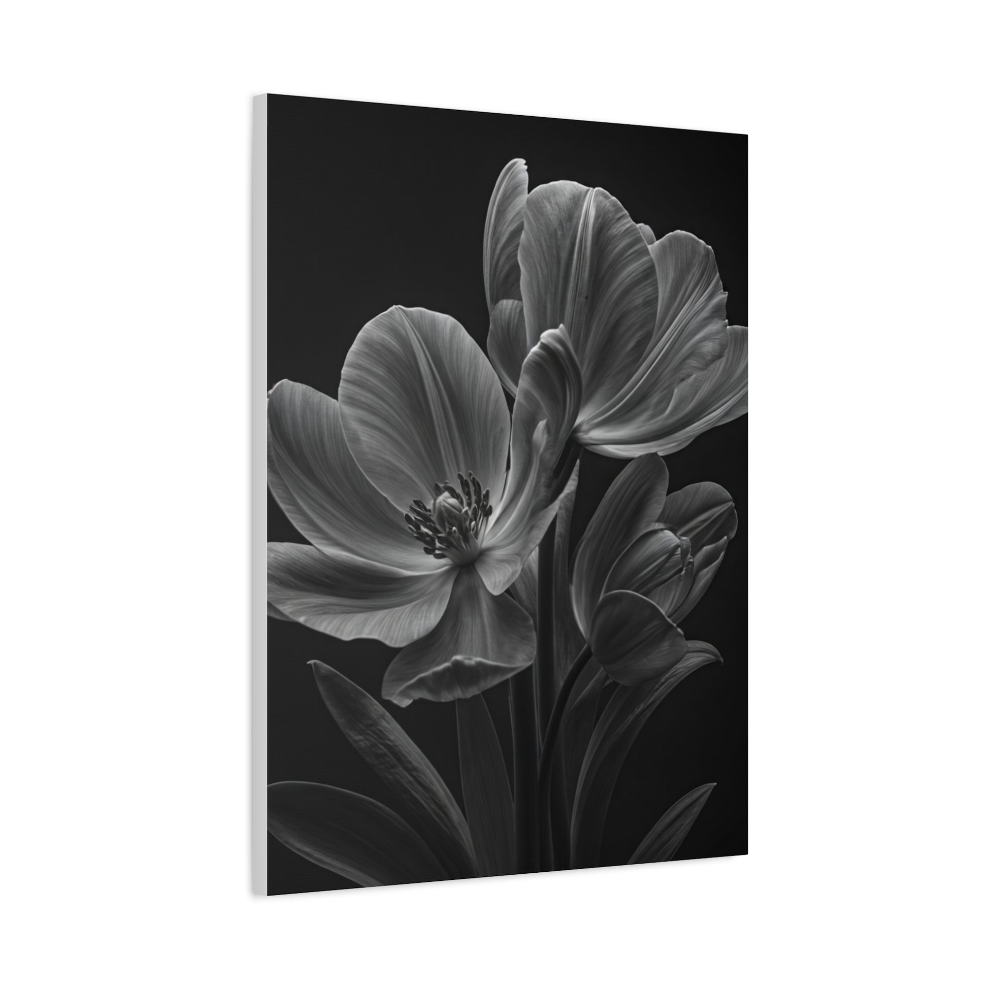 This graceful composition features two magnolia-style blooms rising elegantly from their stems, creating a harmonious and balanced arrangement. The soft grayscale tones highlight the smooth curvature of each petal, giving the artwork a timeless and sculptural appeal. Ideal for luxury bedrooms, contemporary living spaces, or refined office décor, this canvas print embodies calm beauty and elevated simplicity.