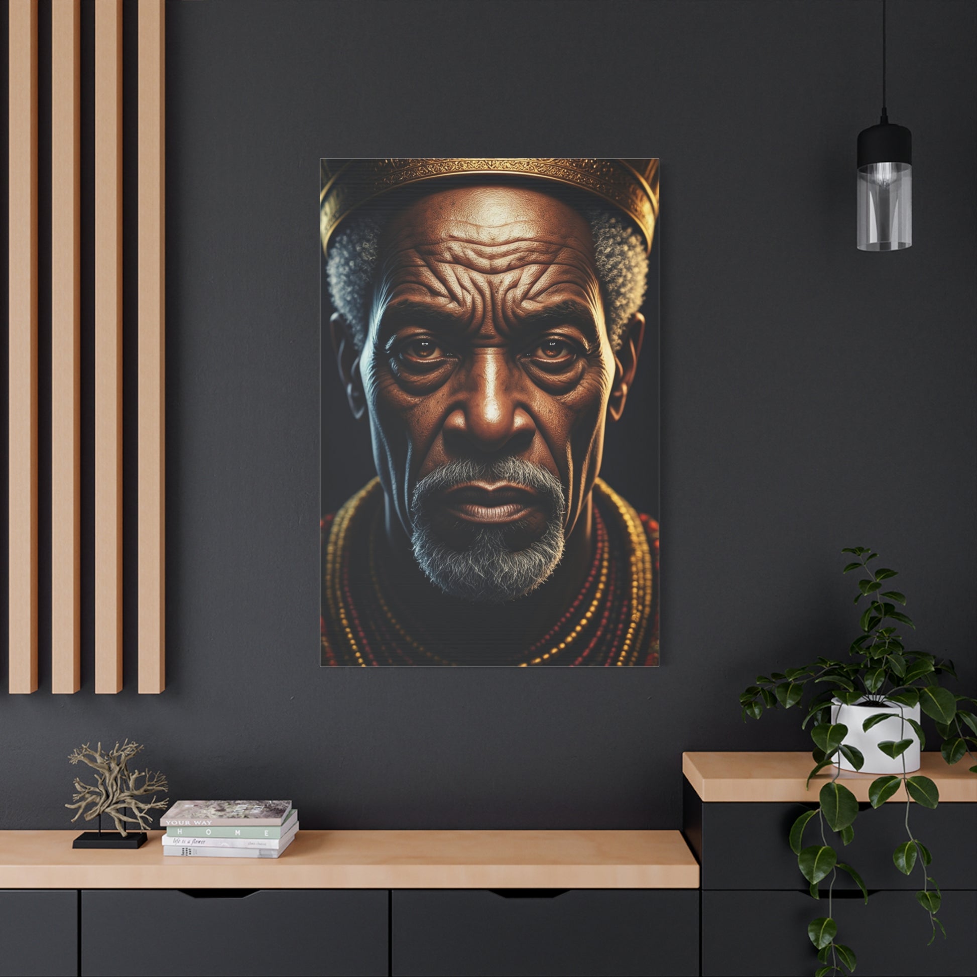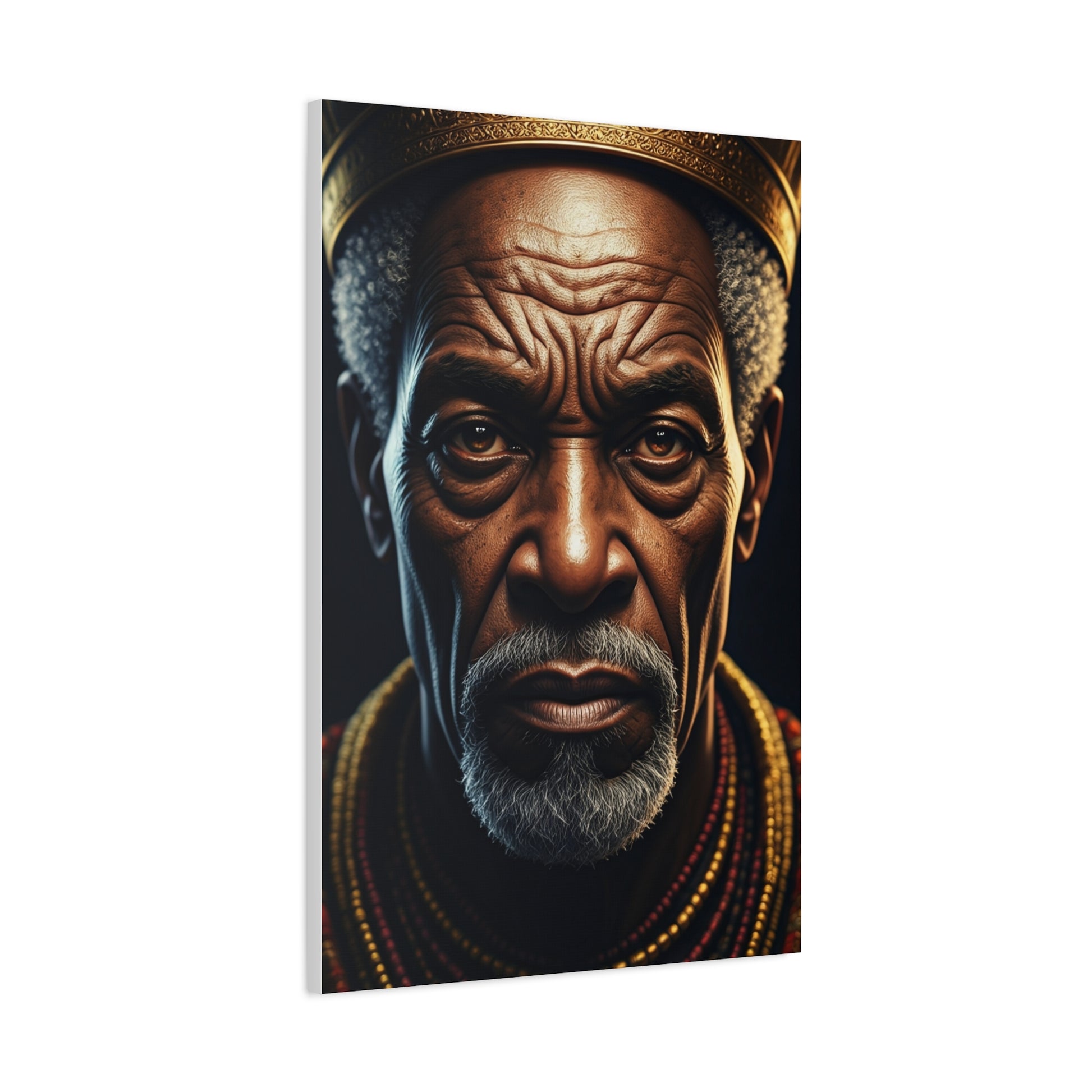 This striking portrait captures the depth of age, wisdom, and lived experience through an intensely detailed gaze. The dramatic lighting highlights every texture and expression line, symbolizing resilience, legacy, and the timeless strength carried through generations. Warm tones and subtle shadows create a cinematic atmosphere that feels both intimate and powerful. The subject’s presence commands respect, offering a story of endurance, dignity, and identity without words. Ideal for modern, cultural, or statement interiors, this artwork adds character, soul, and profound meaning to any space.