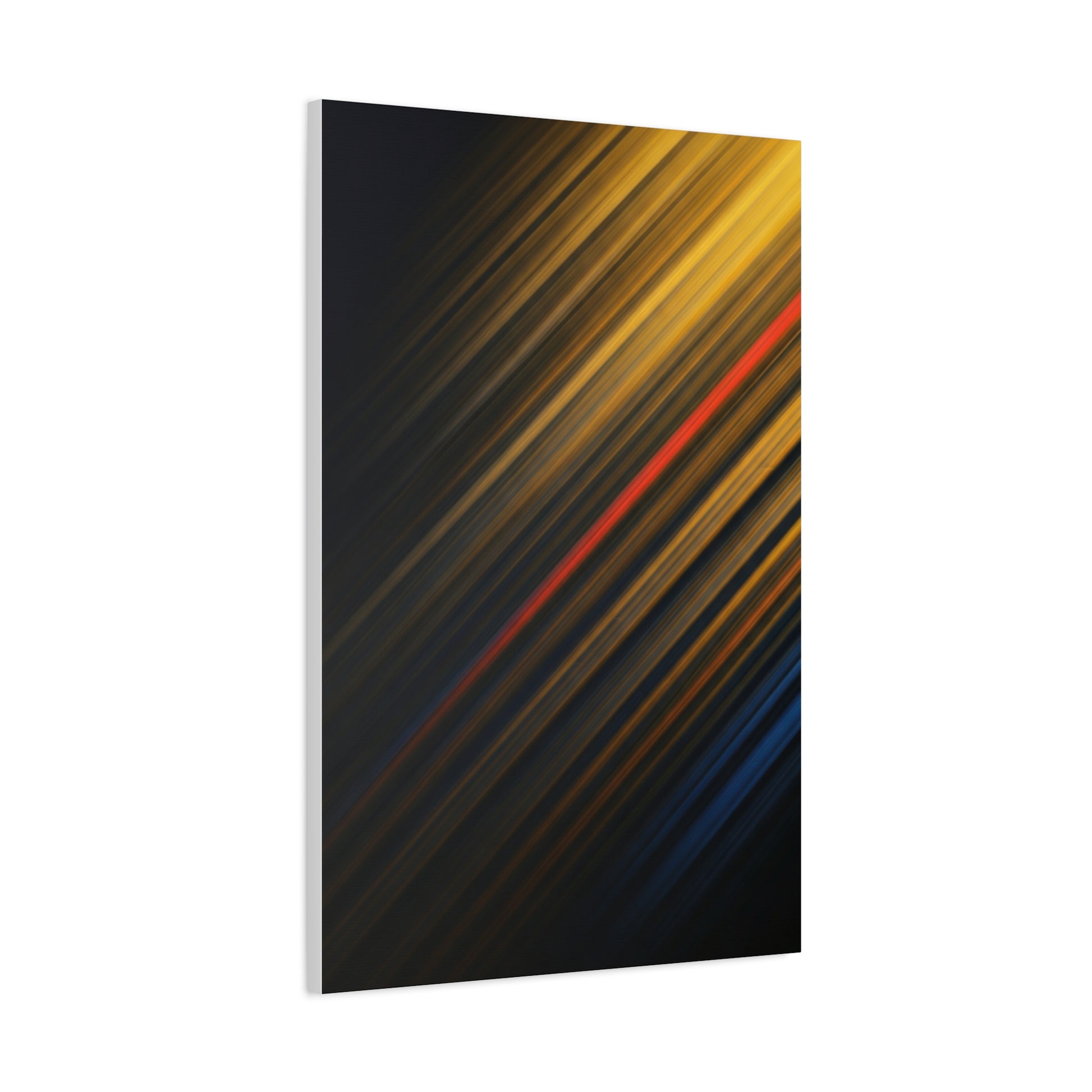 Subtle golden streaks glide diagonally across a dark background, creating a refined composition filled with depth and quiet energy. The layered lines evoke motion without overpowering the space, making this artwork perfect for minimalist or modern interiors. A tasteful choice for offices or living spaces seeking understated luxury.
