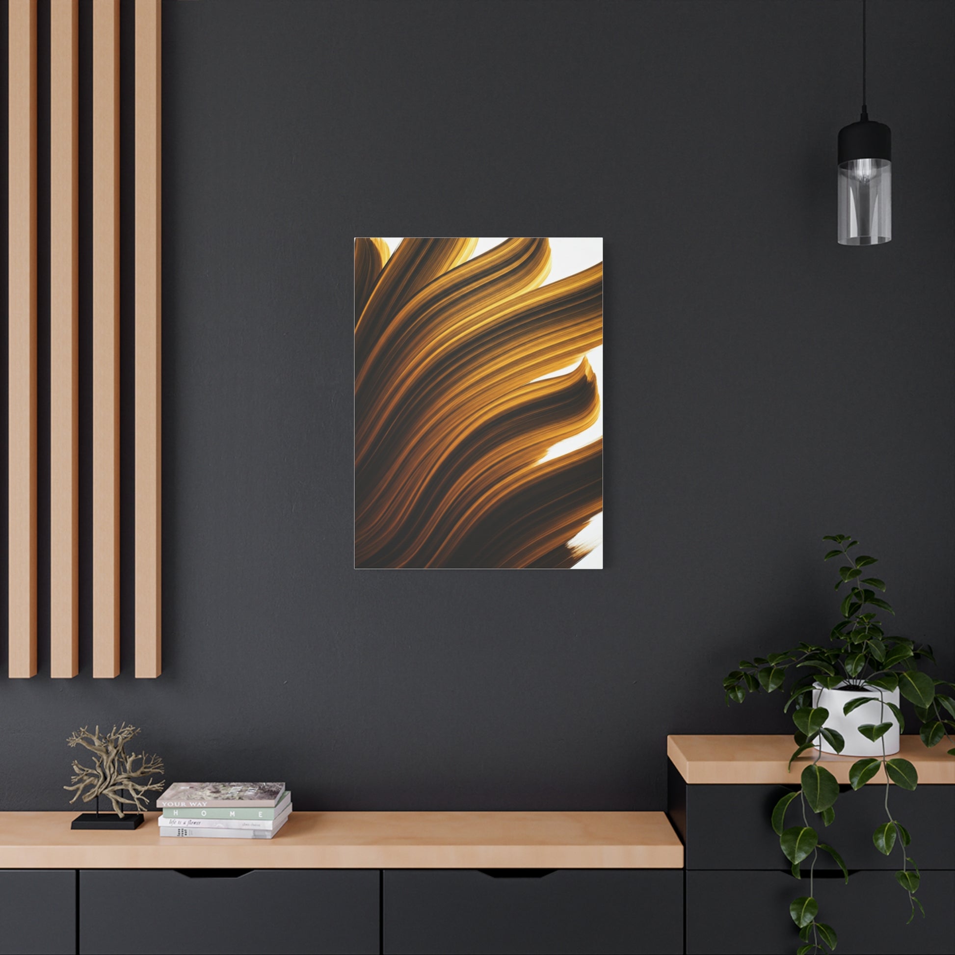 This striking abstract artwork showcases flowing ribbons of gold, amber, and deep brown sweeping across a clean white background. The layered brushstroke textures create a sense of movement and warmth, blending elegance with energy through smooth, rhythmic curves. Subtle tonal shifts add depth and sophistication, making the piece feel both dynamic and refined. Perfect for modern, luxury, or minimalist interiors, this artwork brings warmth, motion, and a bold visual statement to living rooms, offices, or contemporary spaces.