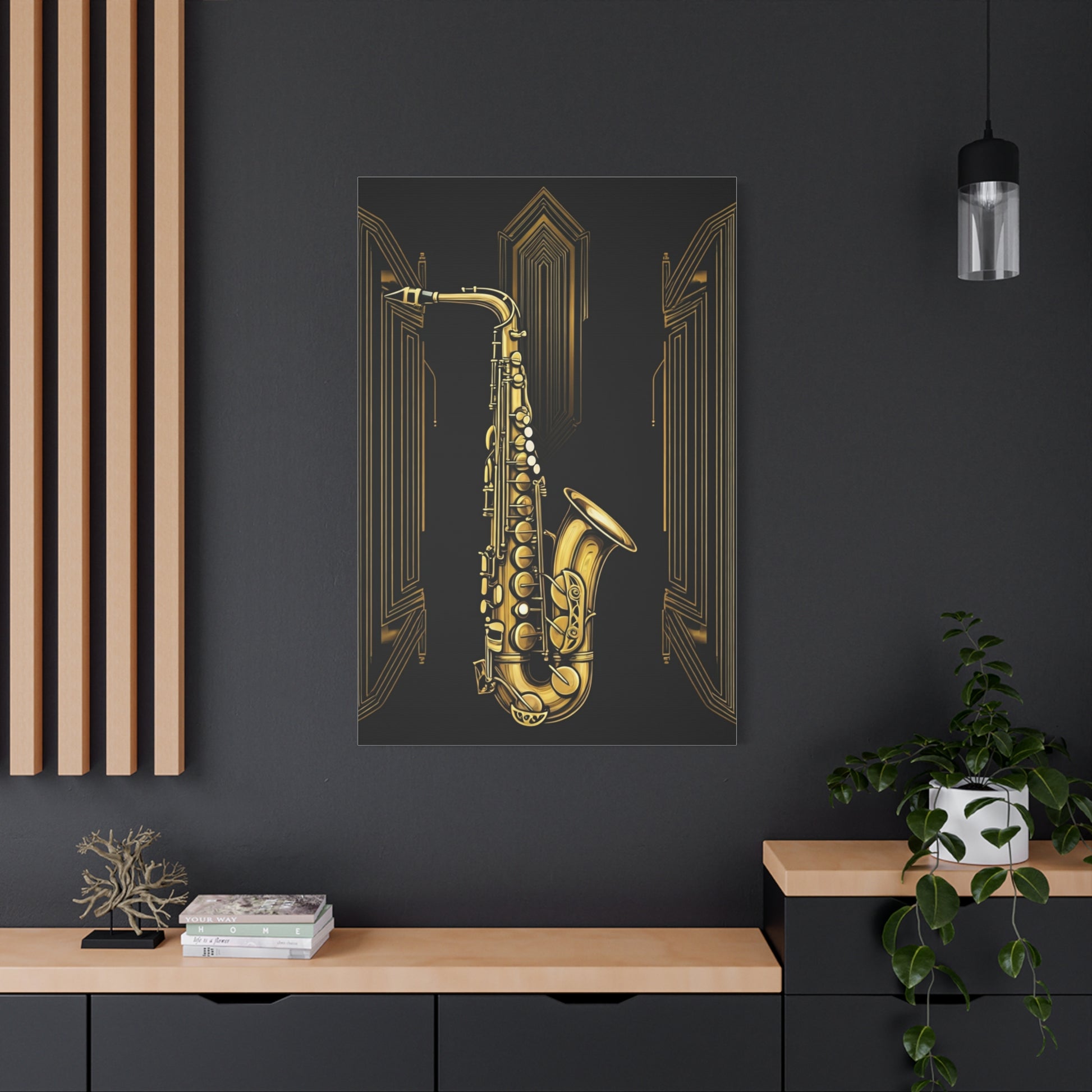 Golden Jazz Saxophone Art Deco Wall Art & Canvas Prints