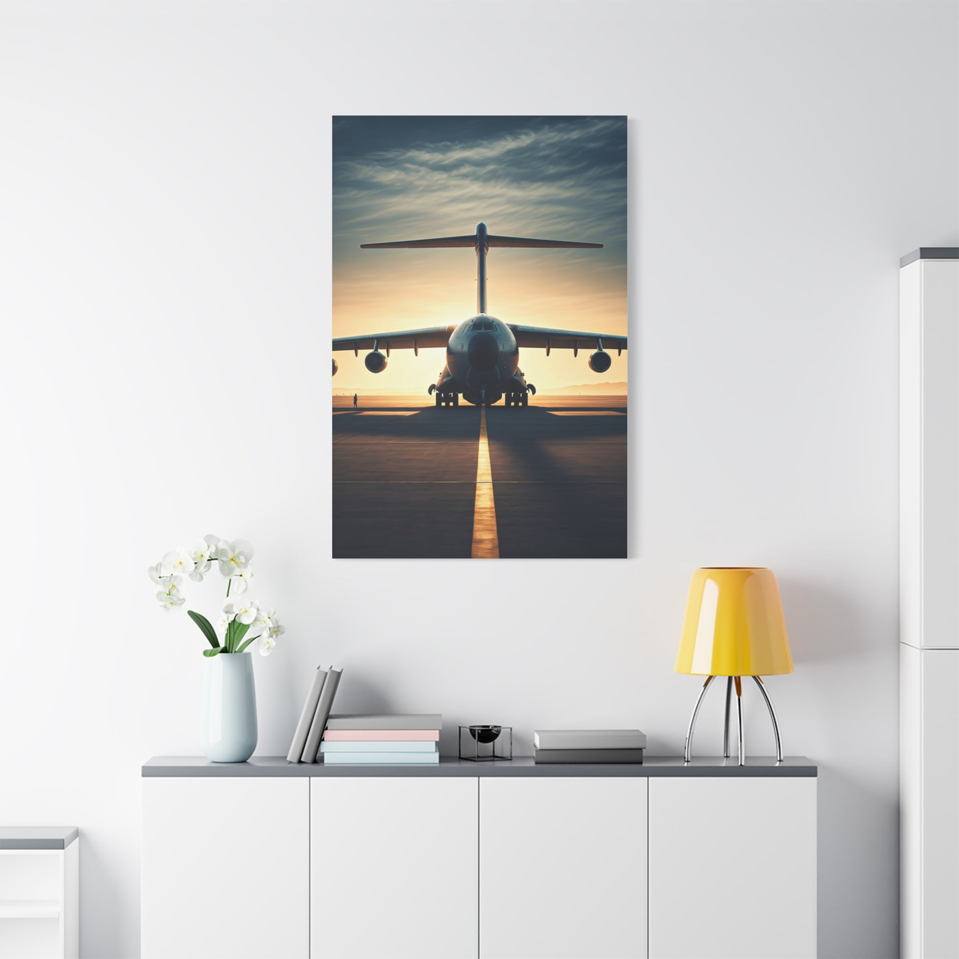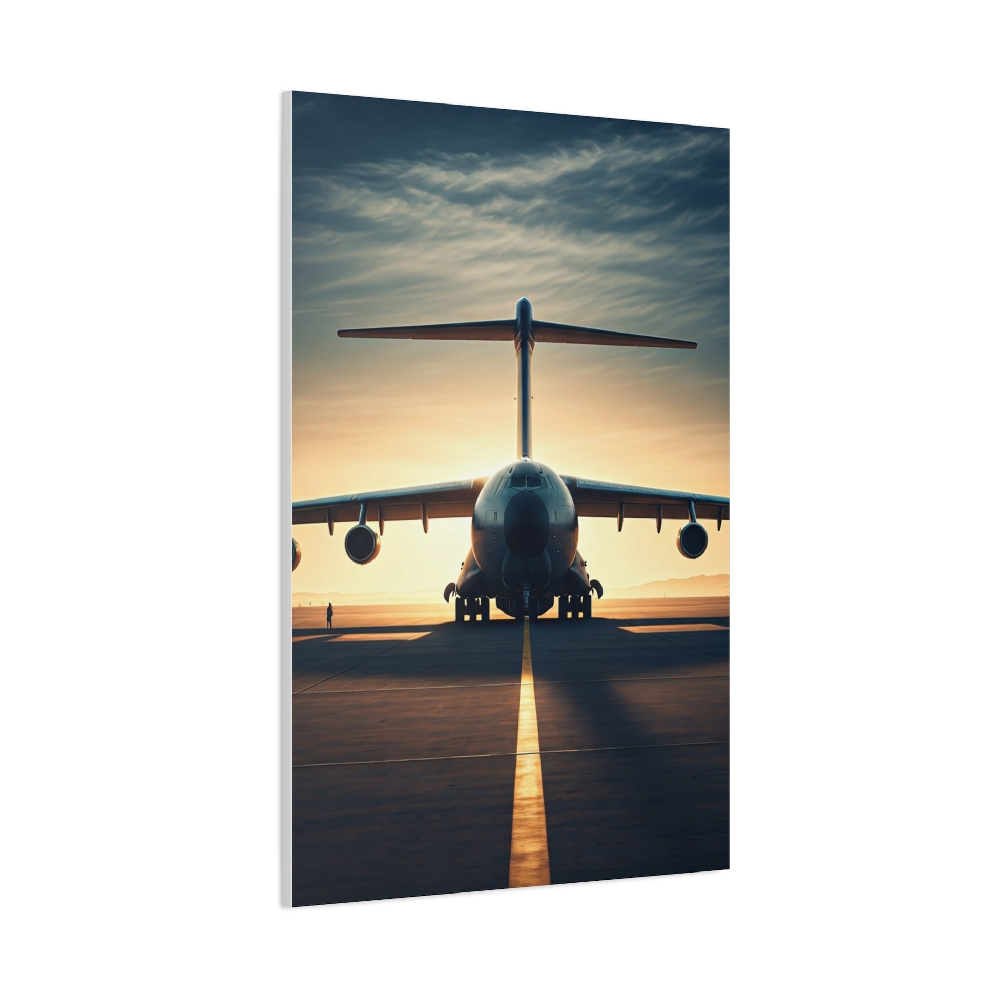 This bold wall piece portrays a massive aircraft aligned on a runway at golden hour, ready for departure with the sun stretching long shadows ahead. The powerful stance symbolizes ambition, progress, and global journeys, making it ideal wall décor for offices, aviation enthusiasts, and motivational spaces..