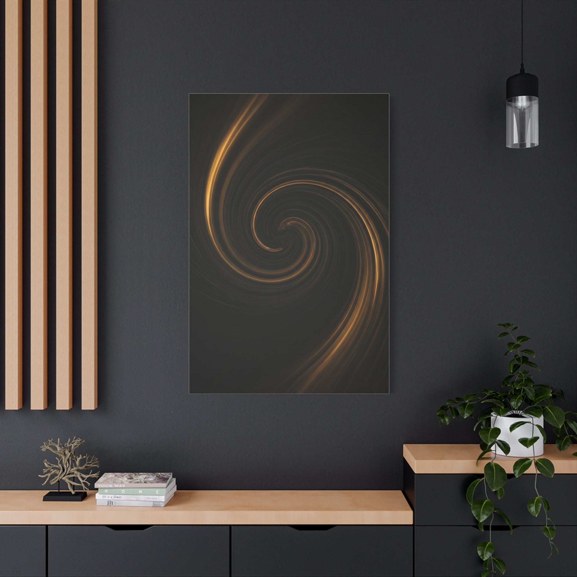 This dynamic abstract artwork showcases a swirling spiral of warm gold tones against a deep black backdrop. The fluid motion and metallic glow create depth, energy, and contemporary sophistication. Perfect for statement walls in modern living rooms or offices, this piece blends movement with refined luxury.