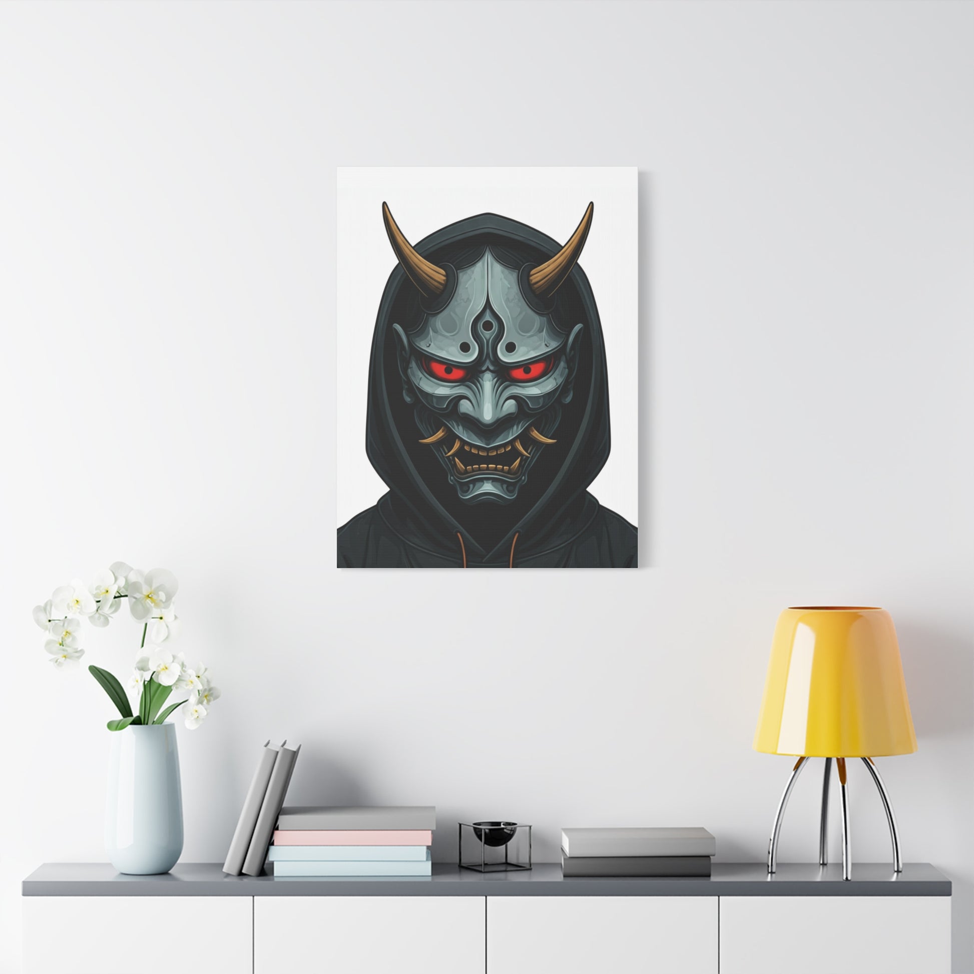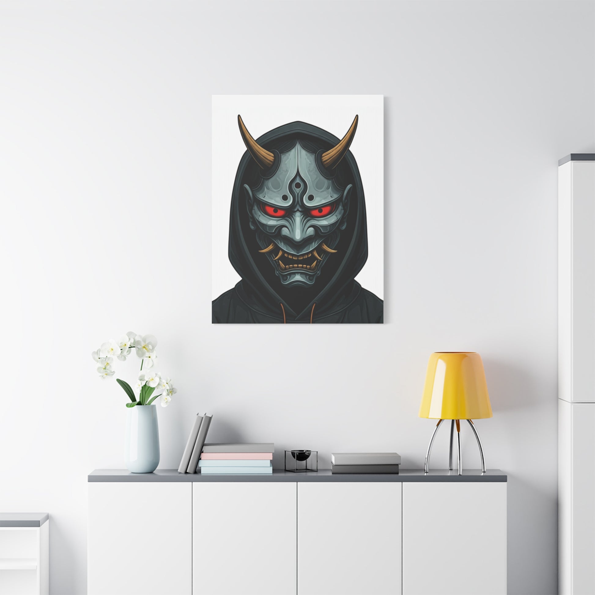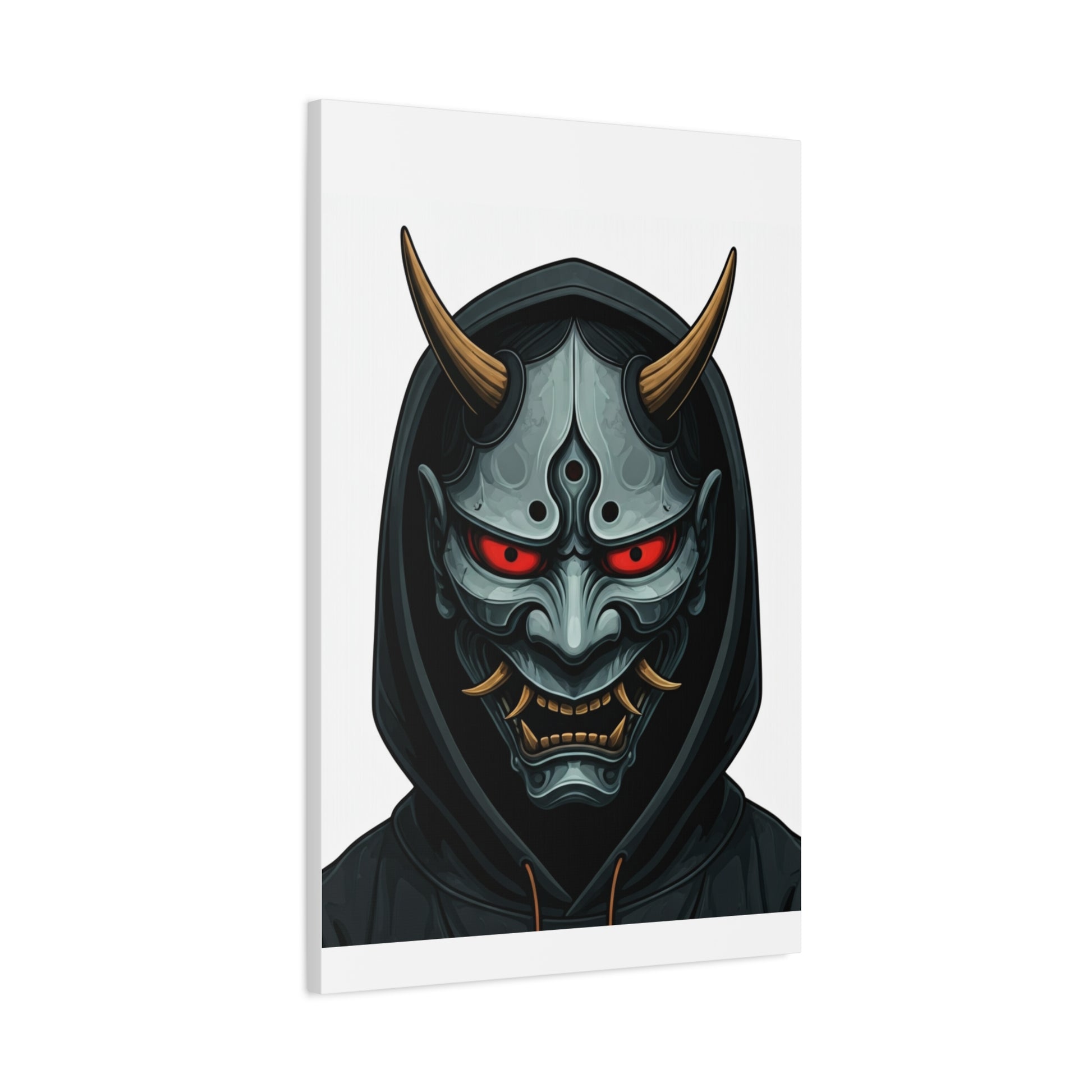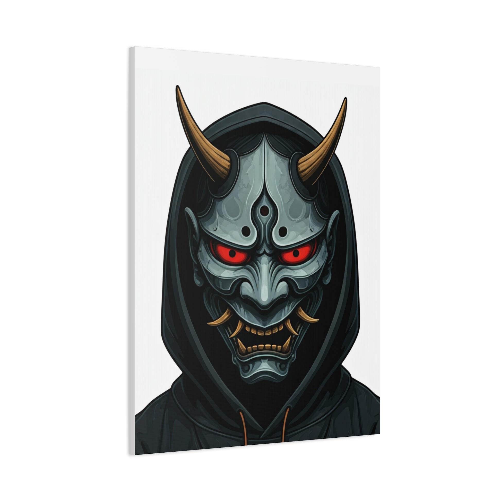 Hooded Demon Mask Wall Art & Canvas Prints feature a fierce demon face framed by a dark hood, with glowing red eyes and sharp horn details that create an intense, commanding presence. The symmetrical design and metallic textures give this artwork a powerful, modern edge while maintaining clarity and focus. Ideal for game rooms, studios, man caves, or interiors that embrace bold and dark aesthetics, this piece adds attitude and strength to any wall. The dramatic contrast and detailed expression make it a strong statement artwork without appearing chaotic. Printed using premium-quality materials and high-resolution inks, this wall art delivers crisp lines, deep tones, and long-lasting colour for a striking visual impact.