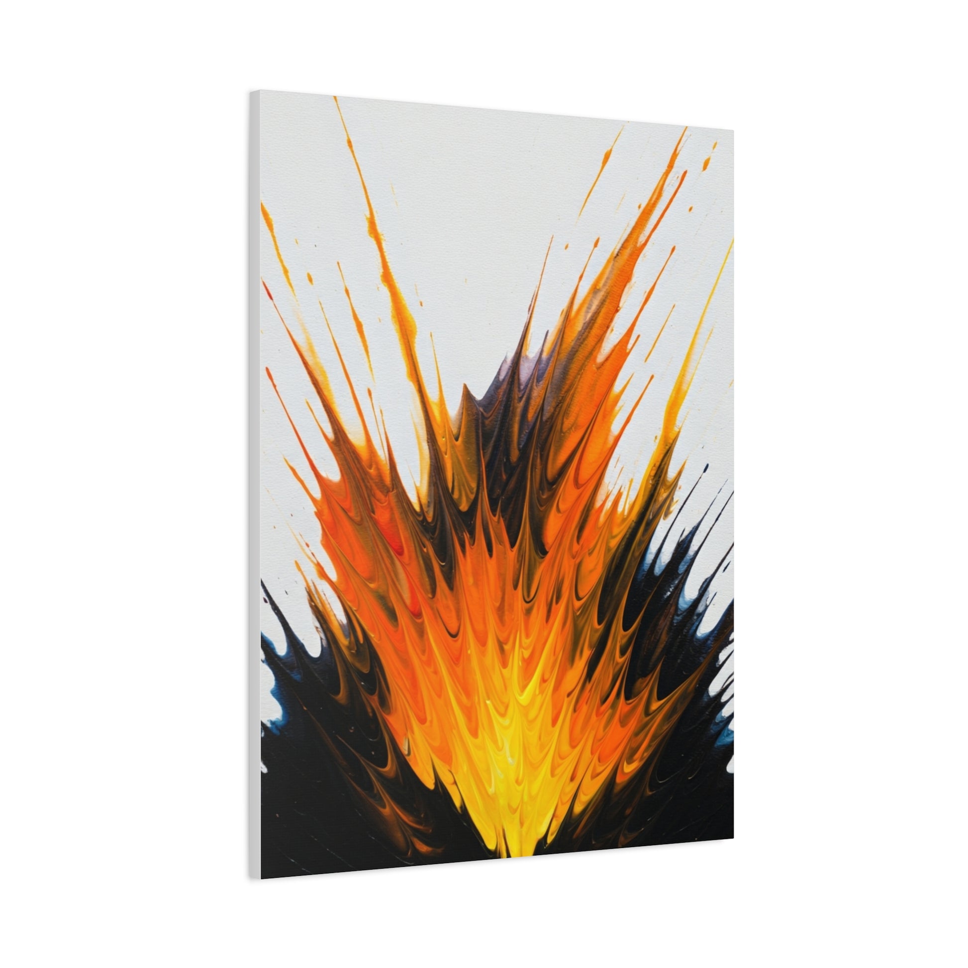 Inferno Impact captures a moment of raw energy as fiery orange and gold tones erupt against deep black shadows. The explosive brush strokes convey power, movement, and intensity, making this artwork a bold statement piece for modern interiors that embrace drama and dynamic expression.