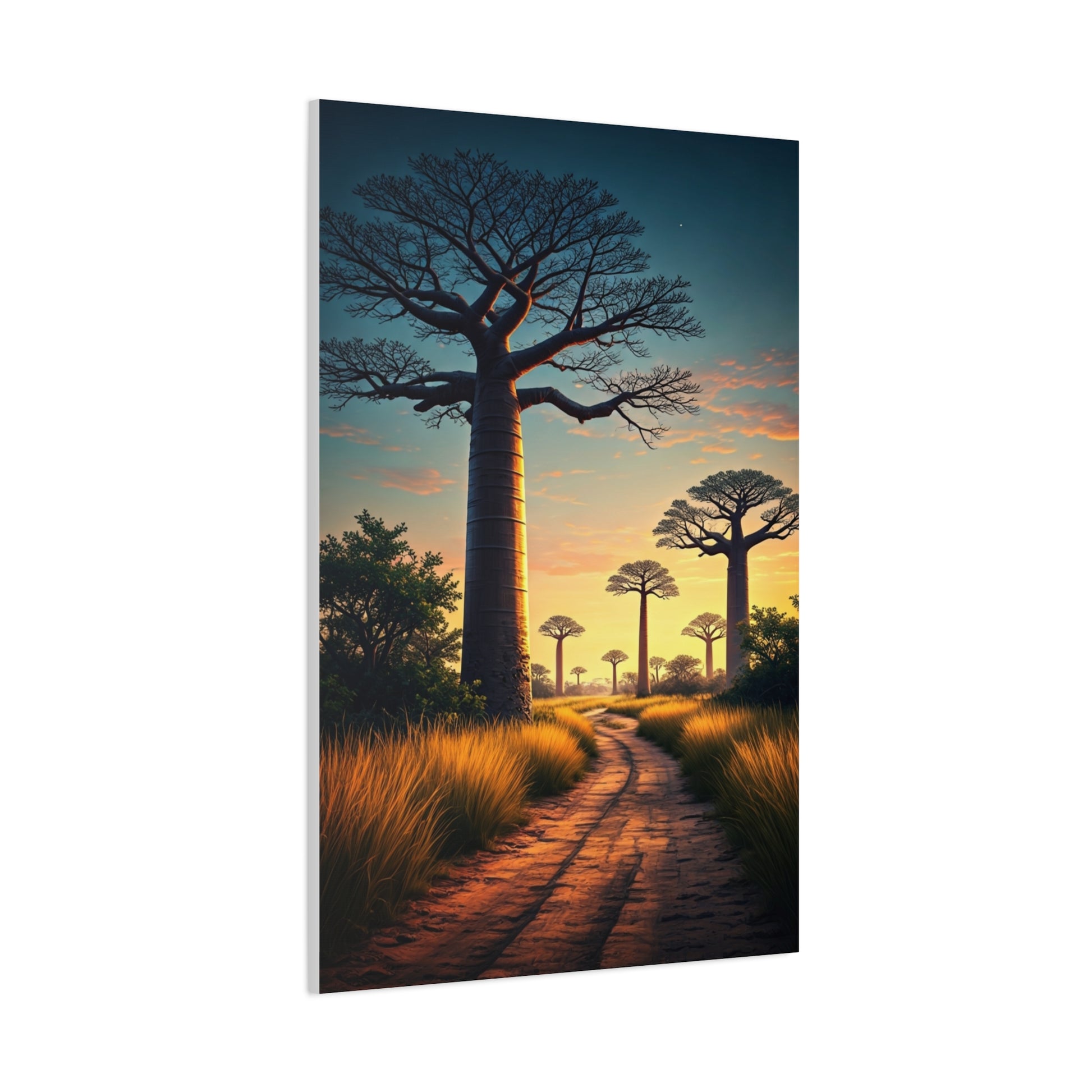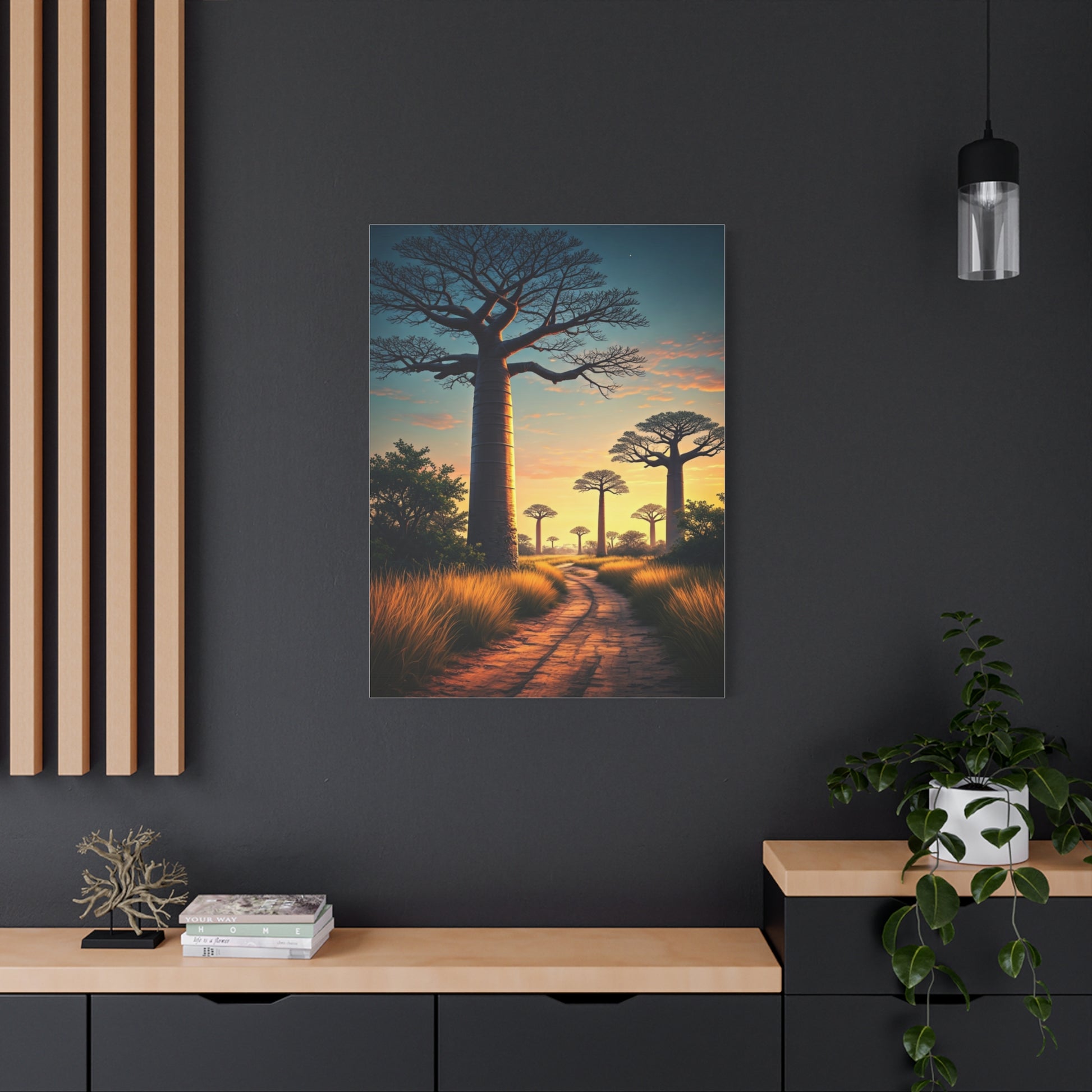 This striking landscape artwork features a solitary acacia tree standing tall in the desert beneath a glowing Milky Way sky. The contrast between the golden dunes and the infinite universe evokes wonder, solitude, and timeless connection between earth and stars. A powerful statement piece for contemporary homes, meditation spaces, or lovers of celestial scenery.