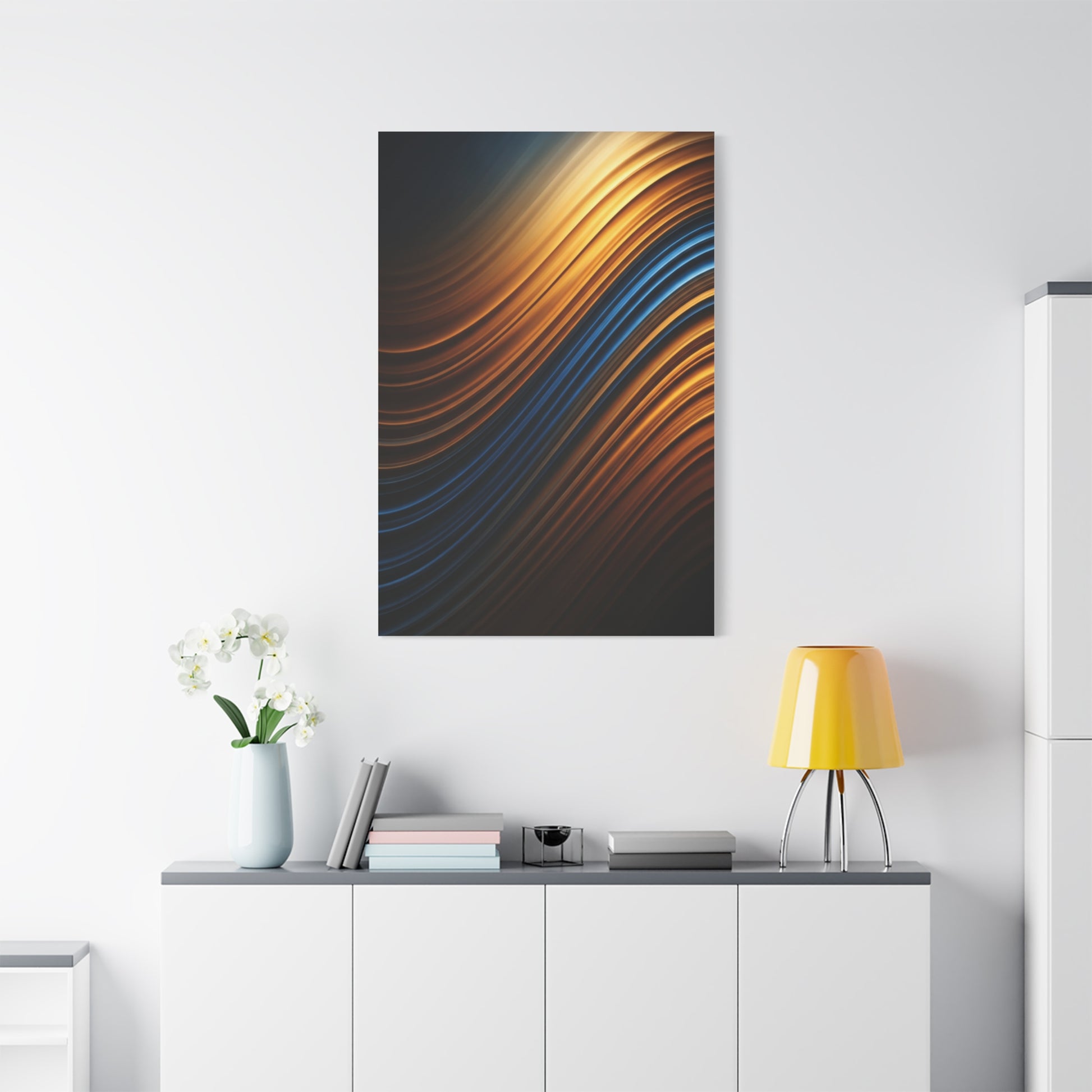 This dynamic abstract artwork showcases sweeping waves of golden light blending seamlessly into deep blue tones. The fluid motion creates a sense of continuity and flow, while the smooth gradients add depth and dimension. The interplay between warm and cool colours brings energy and balance to the composition. Perfect for modern homes, office spaces, or feature walls, this piece delivers bold elegance with a contemporary touch.