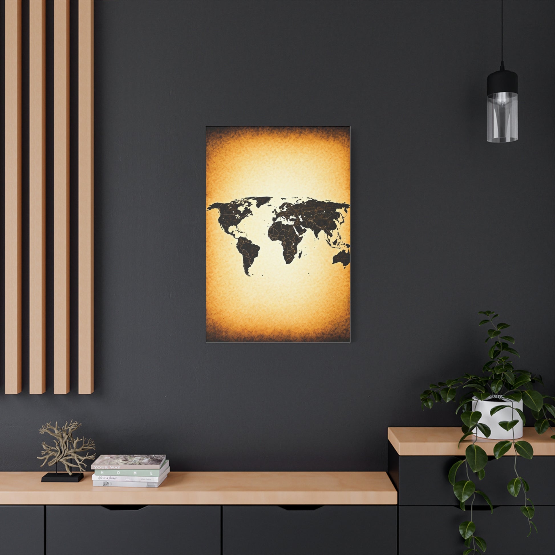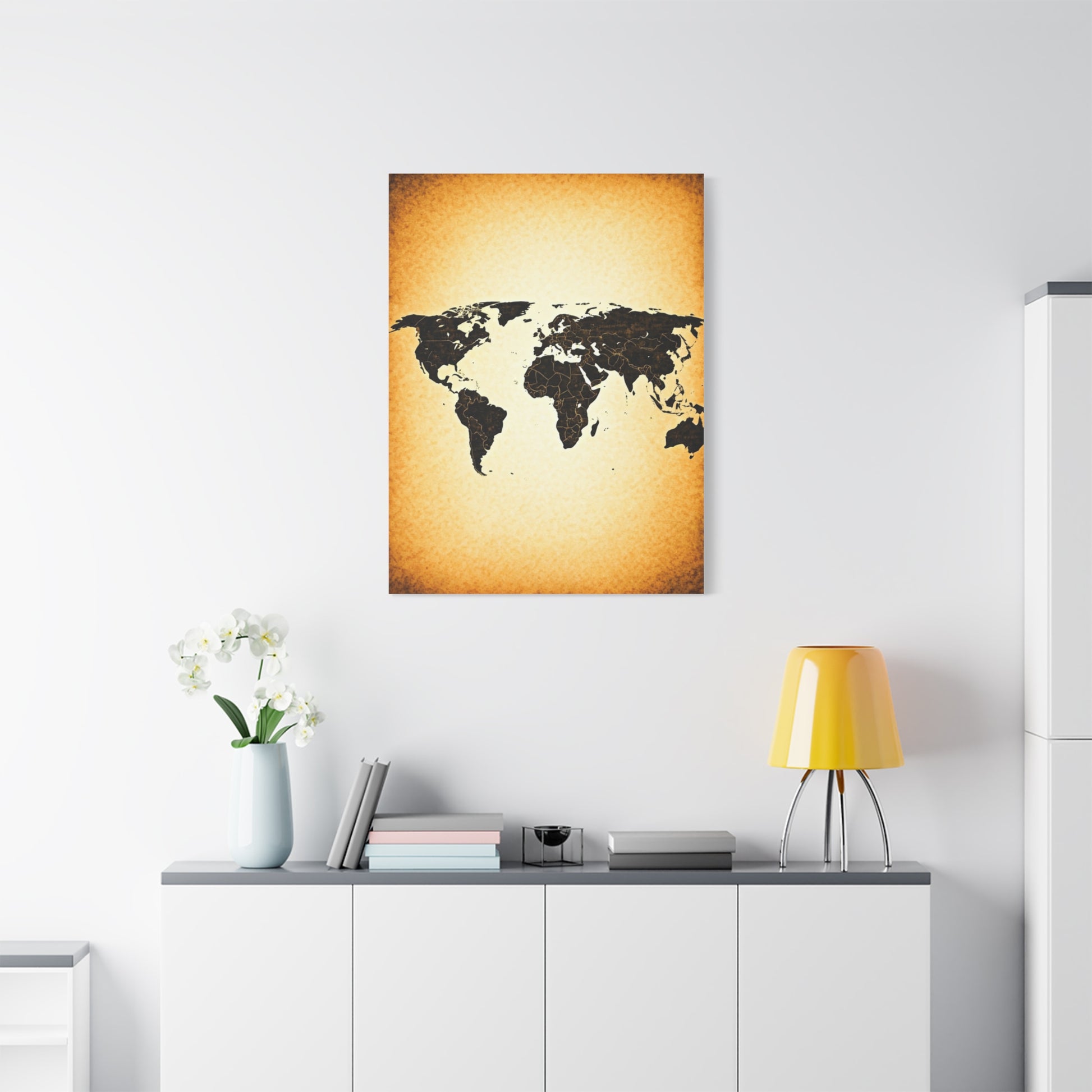 This striking world map artwork blends vintage parchment warmth with bold black silhouette continents for a modern-meets-classic aesthetic. The simplicity of the design creates strong visual impact while still evoking themes of travel, connection, and global perspective. Perfect for minimalist interiors, contemporary offices, or stylish living spaces, this print offers an elegant statement piece for anyone inspired by exploration and modern design.