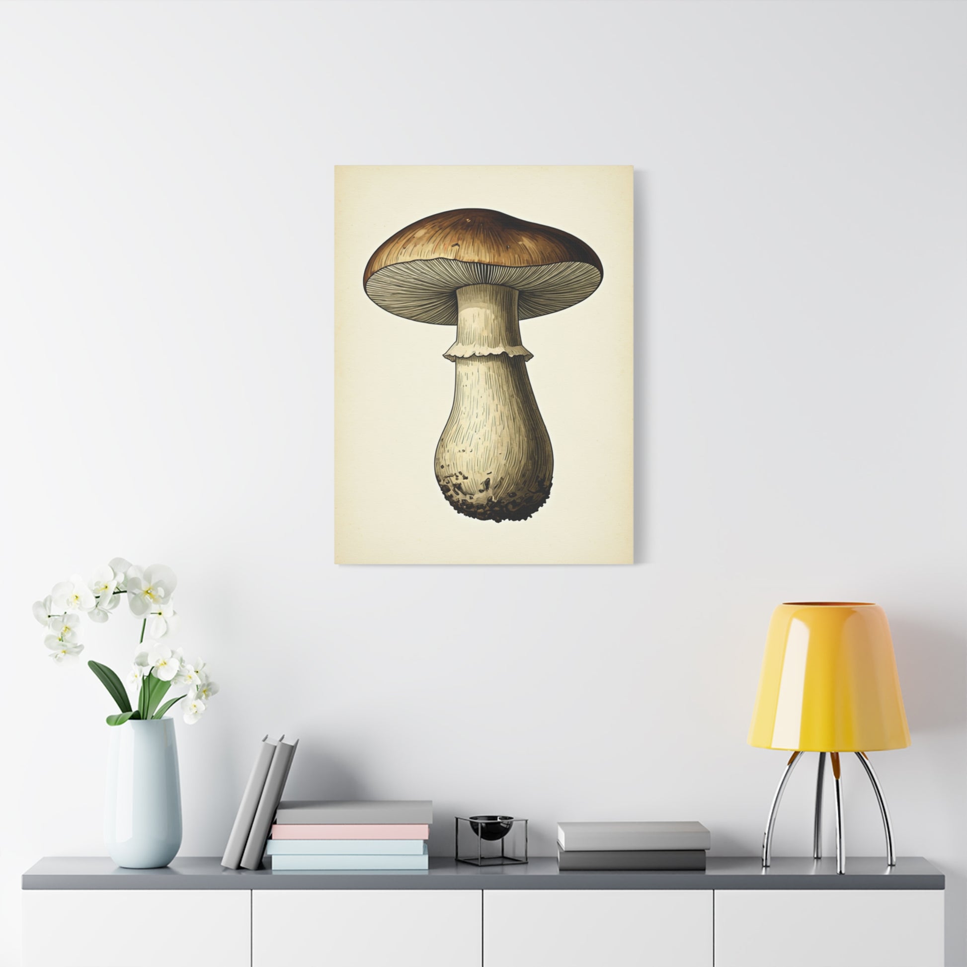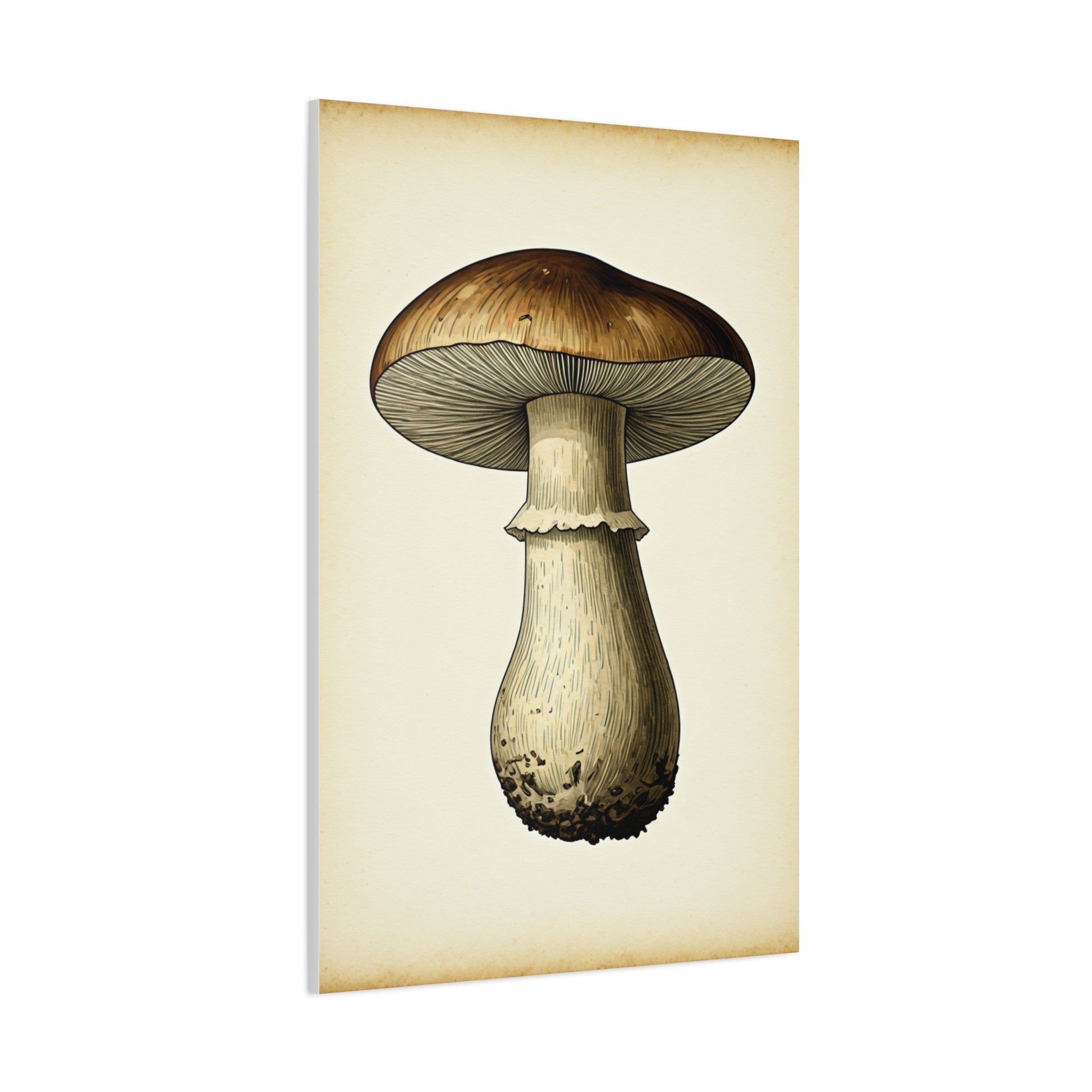 This artwork features a classic hand illustrated mushroom rendered in a timeless scientific style. Delicate linework and earthy tones give the piece an antique naturalist feel, perfect for lovers of vintage decor. The balanced composition highlights the organic structure and textures of the mushroom with quiet elegance. Ideal for kitchens, studies, libraries, or nature inspired interiors. Printed with fine detail and soft color accuracy to preserve its illustration charm. A refined piece that adds warmth and intellectual beauty to any wall.