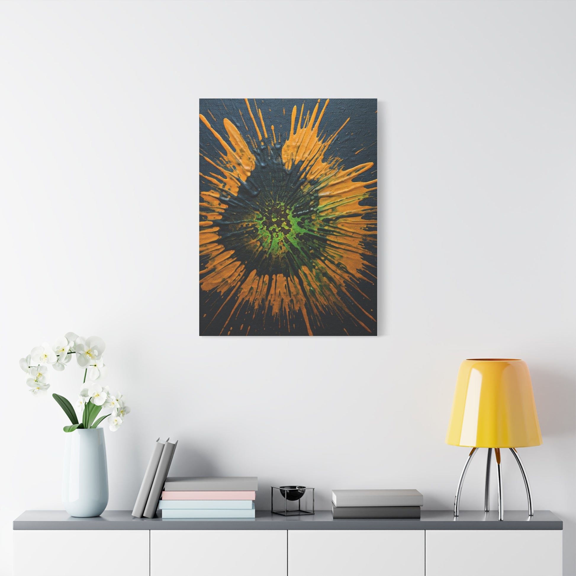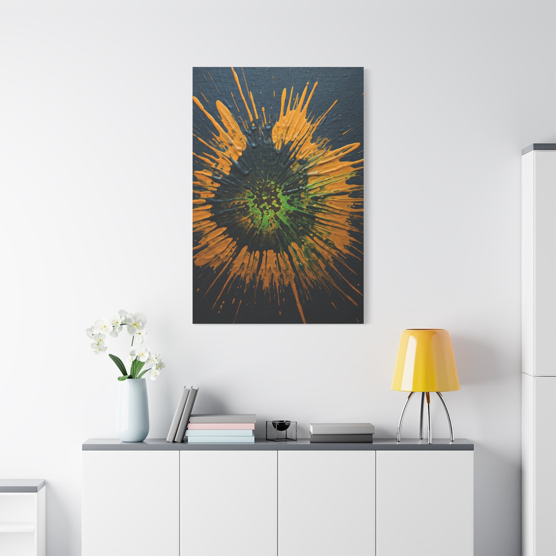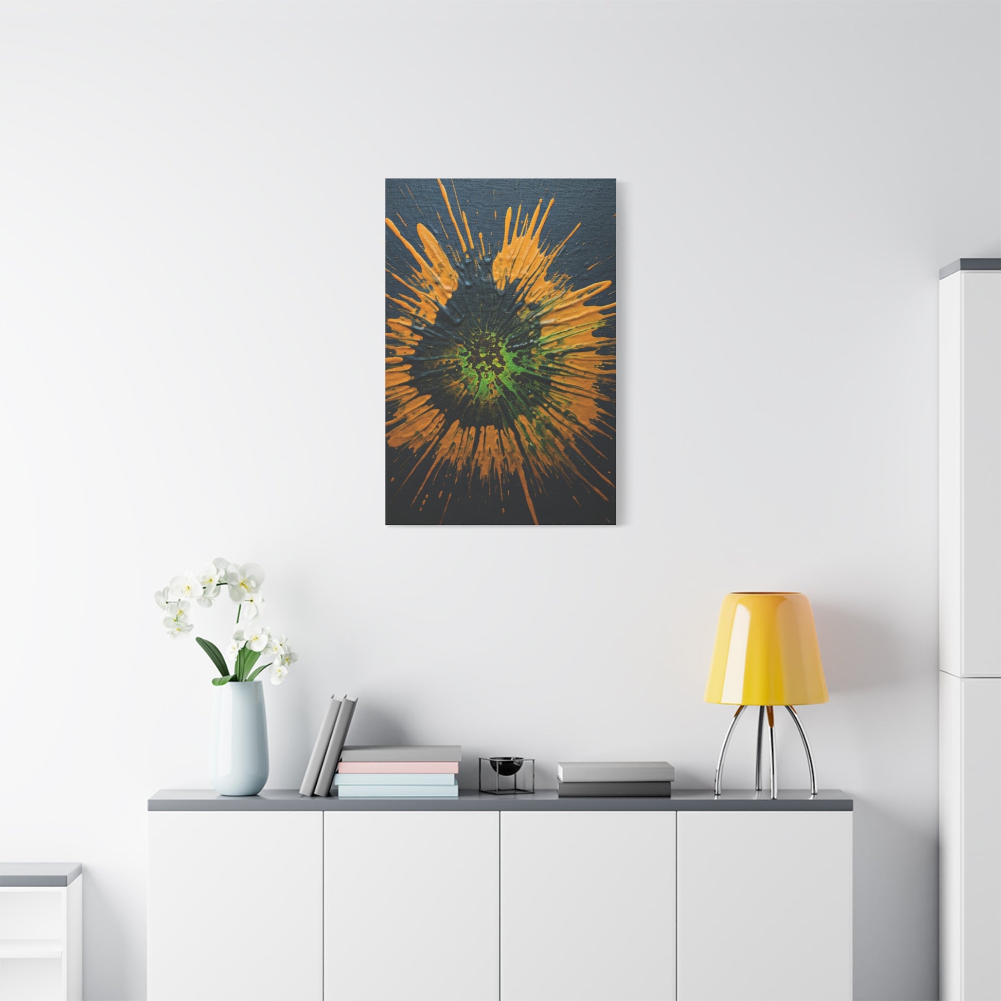 Radiant Impact is a bold abstract explosion of golden energy radiating outward from a dark central core. The dynamic splatter effect conveys power, motion, and intensity, making this artwork perfect for statement walls, creative spaces, and interiors that thrive on dramatic visual expression.