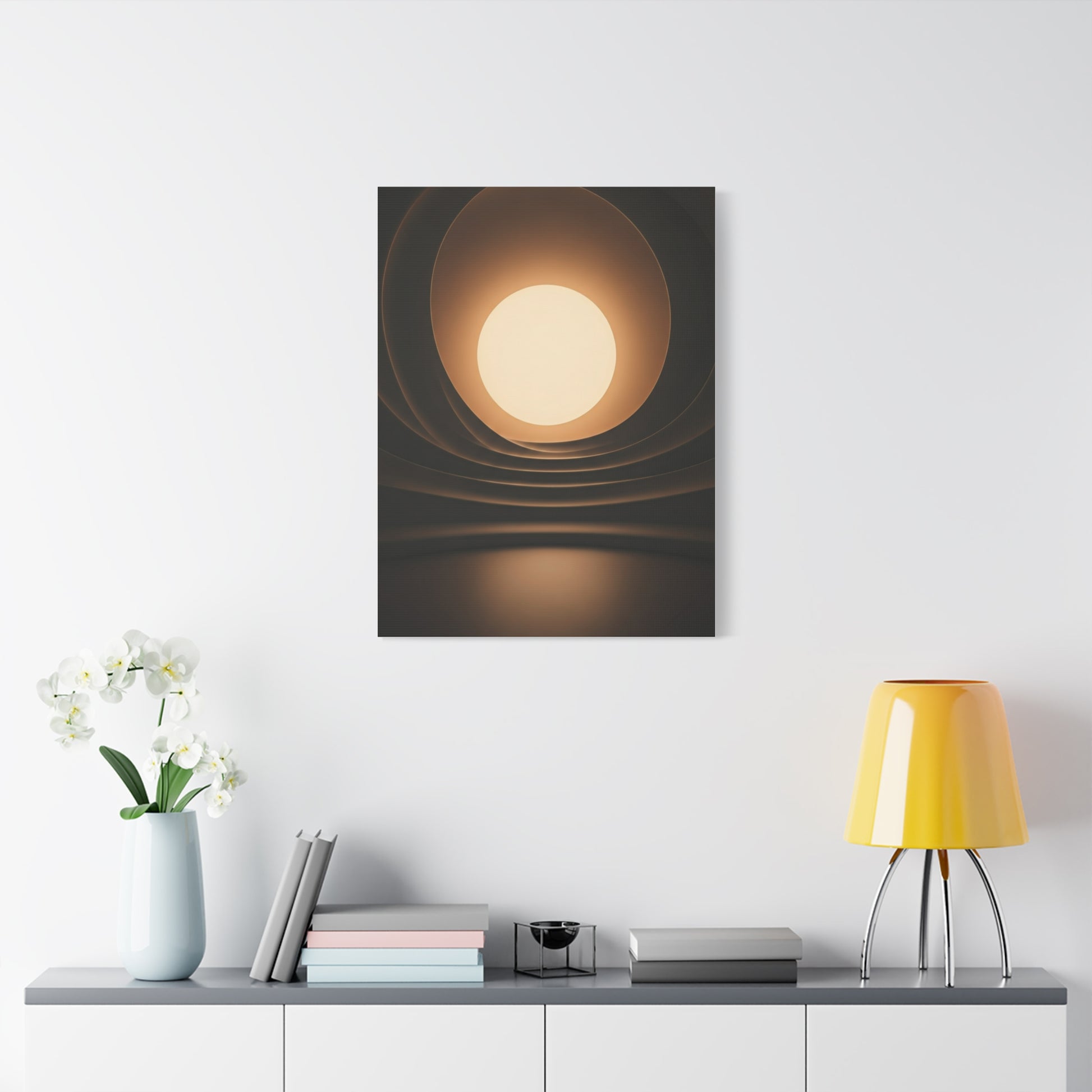 This cinematic abstract artwork features a glowing golden orb suspended above layered dark waves, casting soft reflections below. The interplay of light and shadow creates a dramatic yet balanced composition, evoking power and serenity at once. Ideal for modern luxury spaces, this piece transforms walls into refined visual experiences.