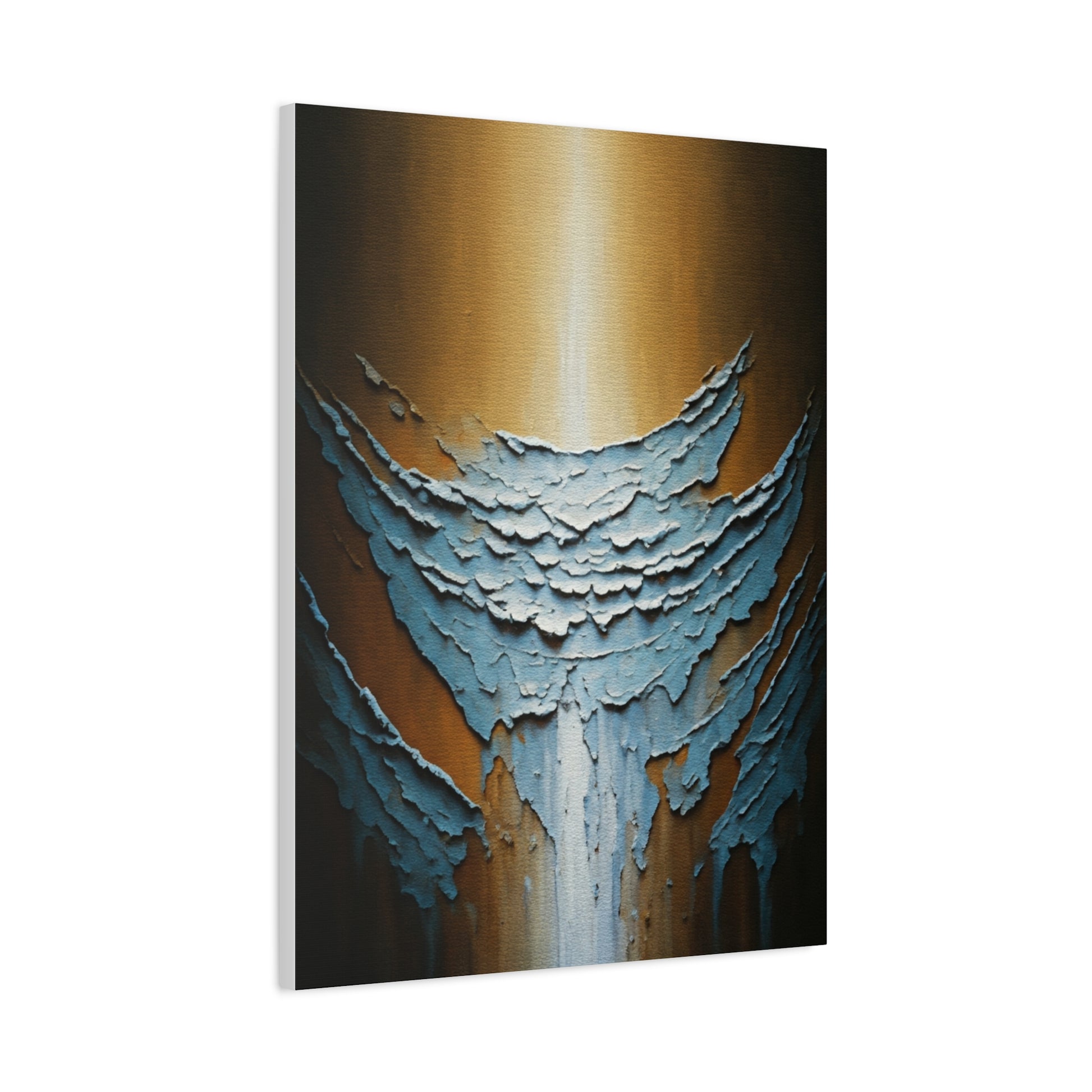 This elegant abstract piece features layered, sculptural forms resembling wings unfolding beneath a beam of golden light. The dimensional textures and symmetrical composition create a sense of strength, calm, and refinement. A perfect statement for modern interiors, it adds depth, symbolism, and a refined artistic presence.