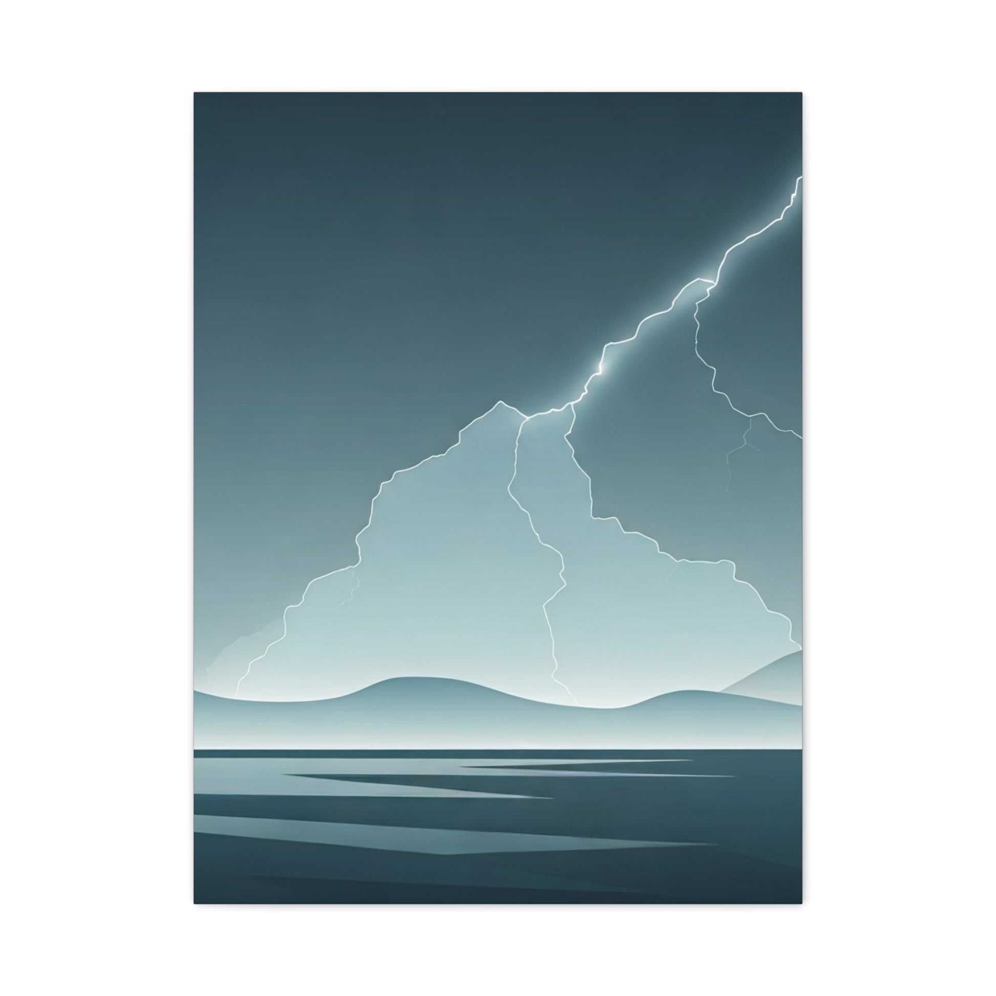 Silent Storm Horizon captures a moment of quiet tension where distant lightning cuts through a calm, expansive seascape. The soft gradients and minimal composition create a sense of stillness before impact, symbolising balance between serenity and power. This artwork is ideal for modern, minimalist, and calming interiors seeking depth without visual noise.