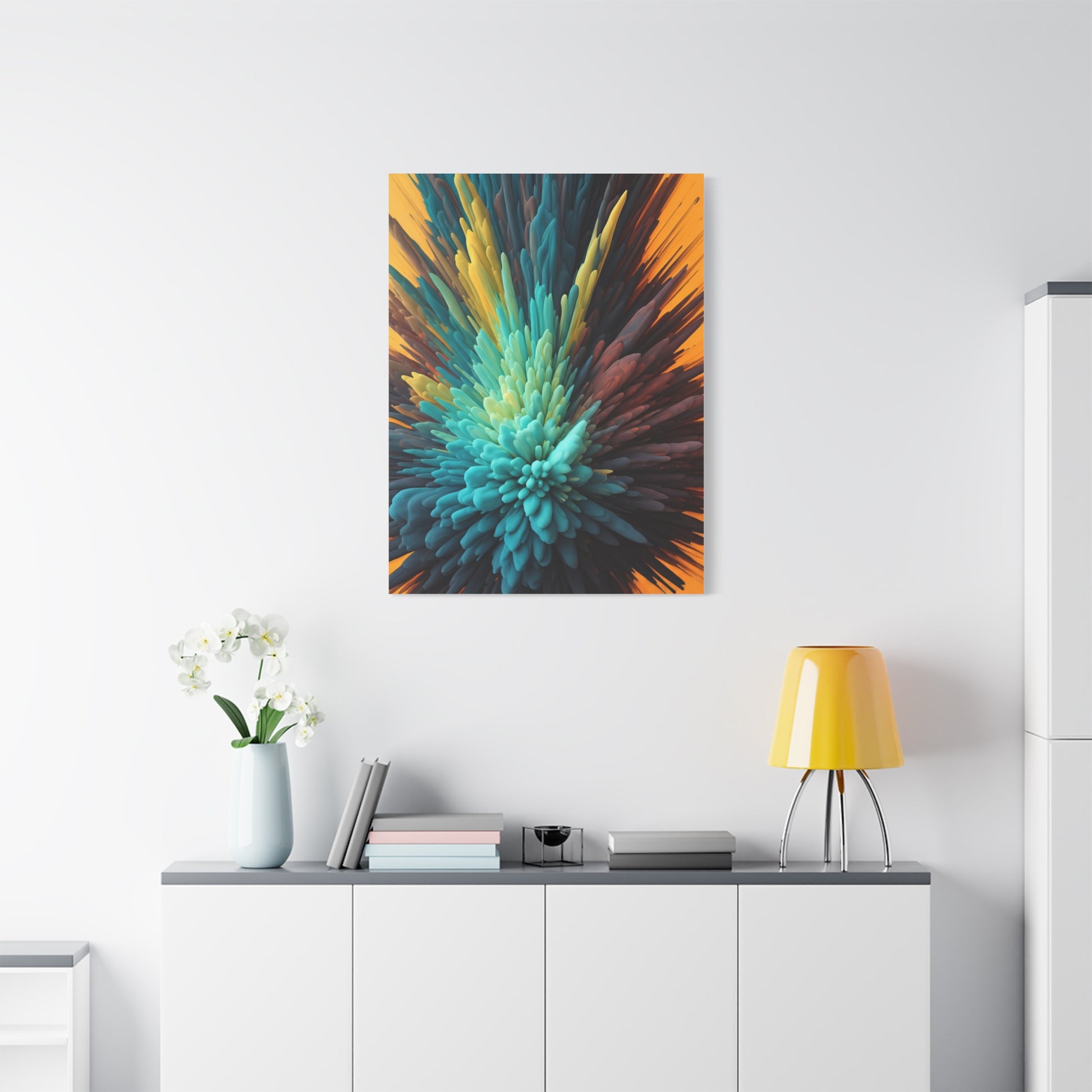 This captivating abstract artwork features a radiant bloom of teal and cool blue tones bursting outward against warm golden accents. The layered, crystalline textures create depth and movement, giving the piece a vibrant yet refined presence. Ideal for modern living rooms, offices, or creative spaces, it adds energy, sophistication, and a striking artistic focal point.