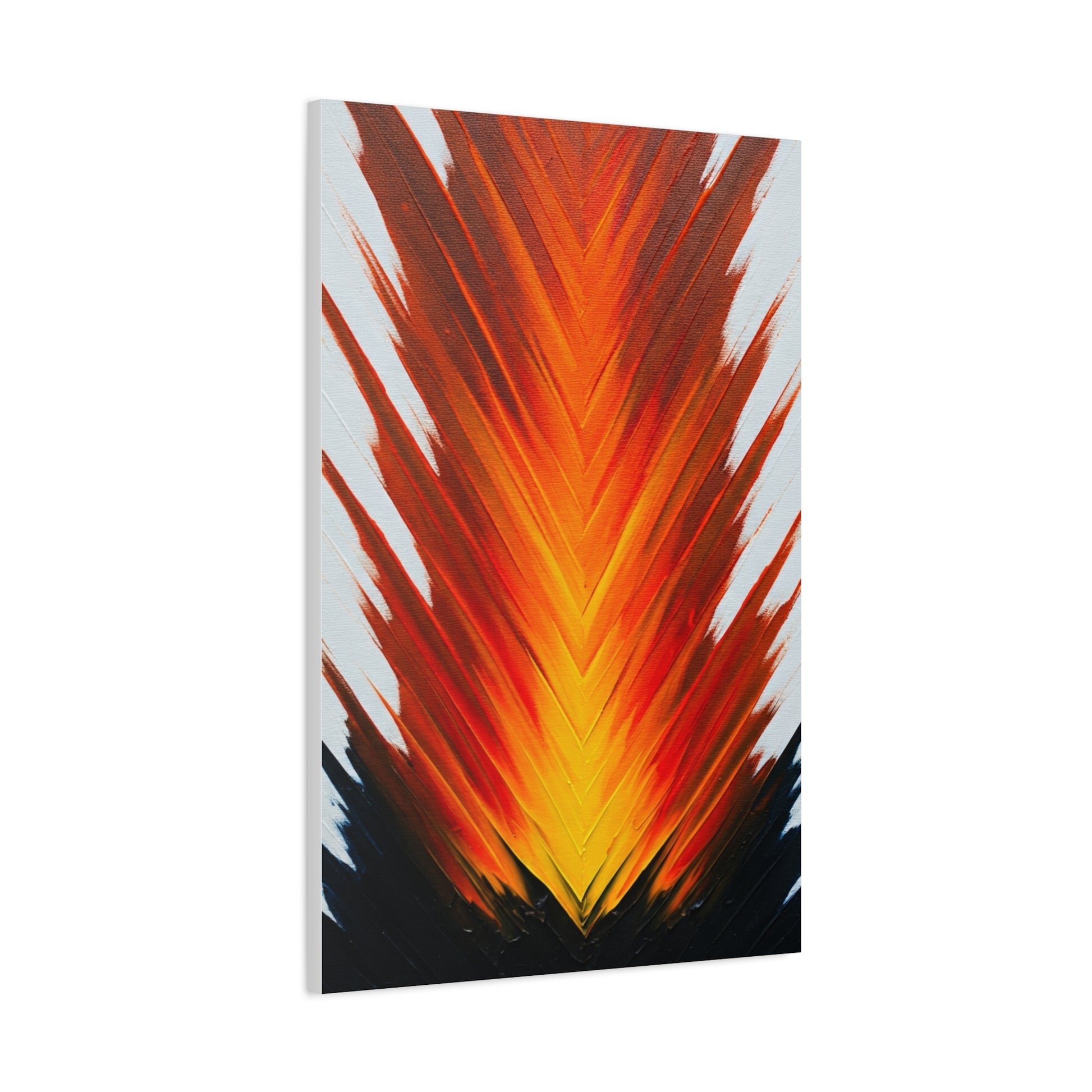 This dynamic abstract piece captures a vertical surge of fiery color, layered with sharp strokes that radiate upward. The balanced composition combines intensity with symmetry, making it a compelling focal point. Ideal for modern homes or creative environments, it adds warmth, drama, and visual impact without overwhelming the room.
