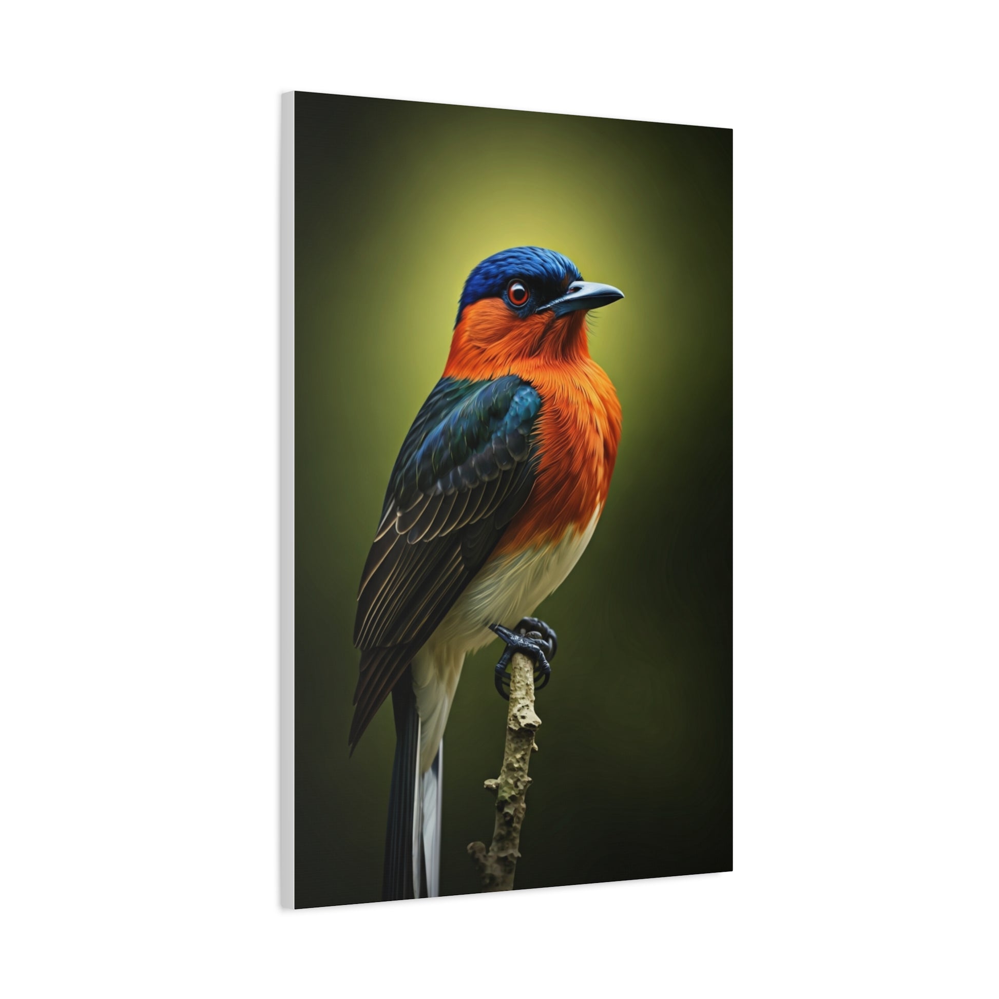 A beautifully detailed portrait of a bluebird perched gracefully on a branch, showcasing its vivid orange chest and rich blue feathers. Set against a soft, natural backdrop, this artwork brings warmth, color, and a refreshing touch of nature into living rooms, bedrooms, or cozy reading spaces.