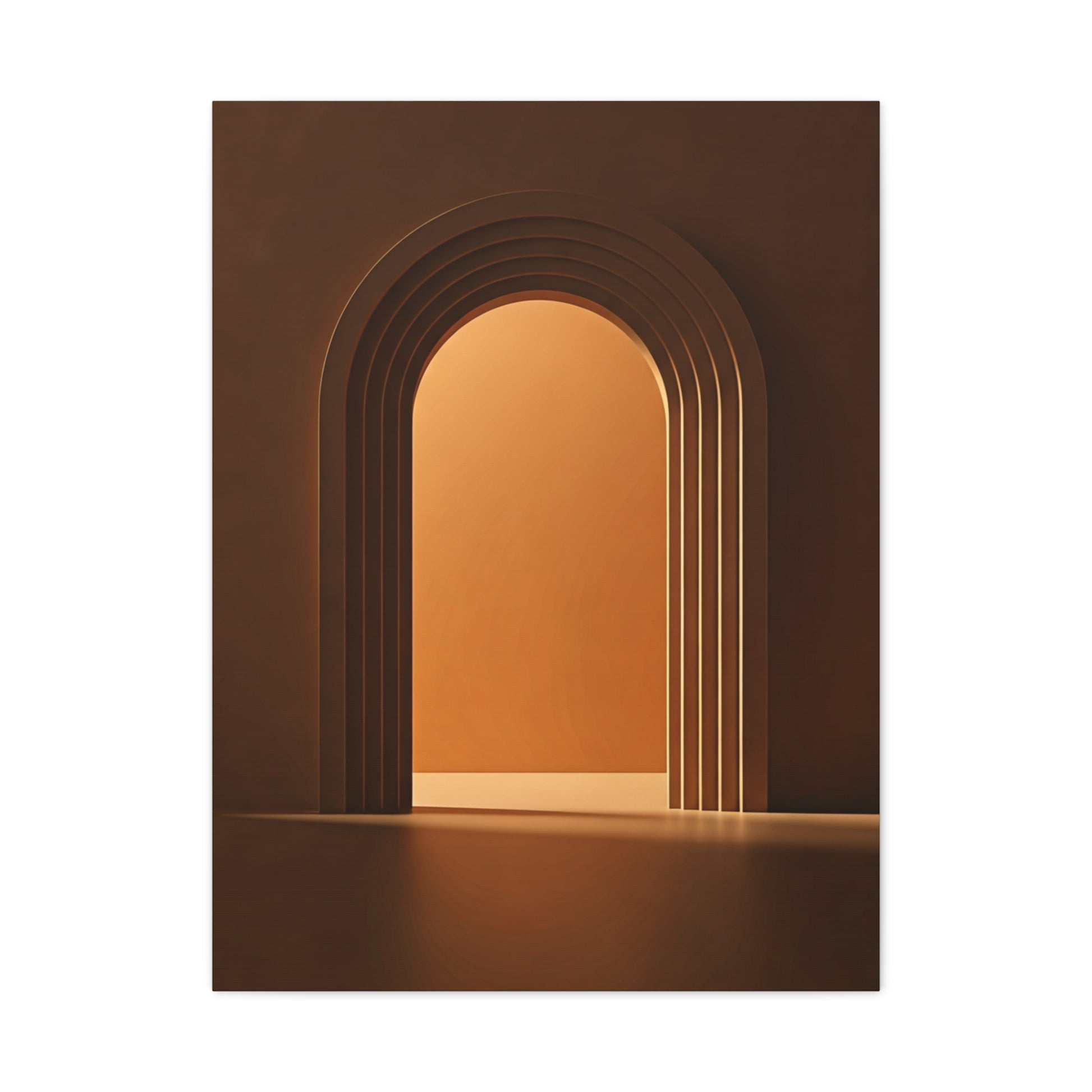 A serene architectural artwork featuring layered arches illuminated by warm golden light, symbolizing transition, depth, and calm progression. The clean geometry and harmonious tones make this piece perfect for contemporary spaces, hallways, or interiors inspired by modern architectural elegance.,