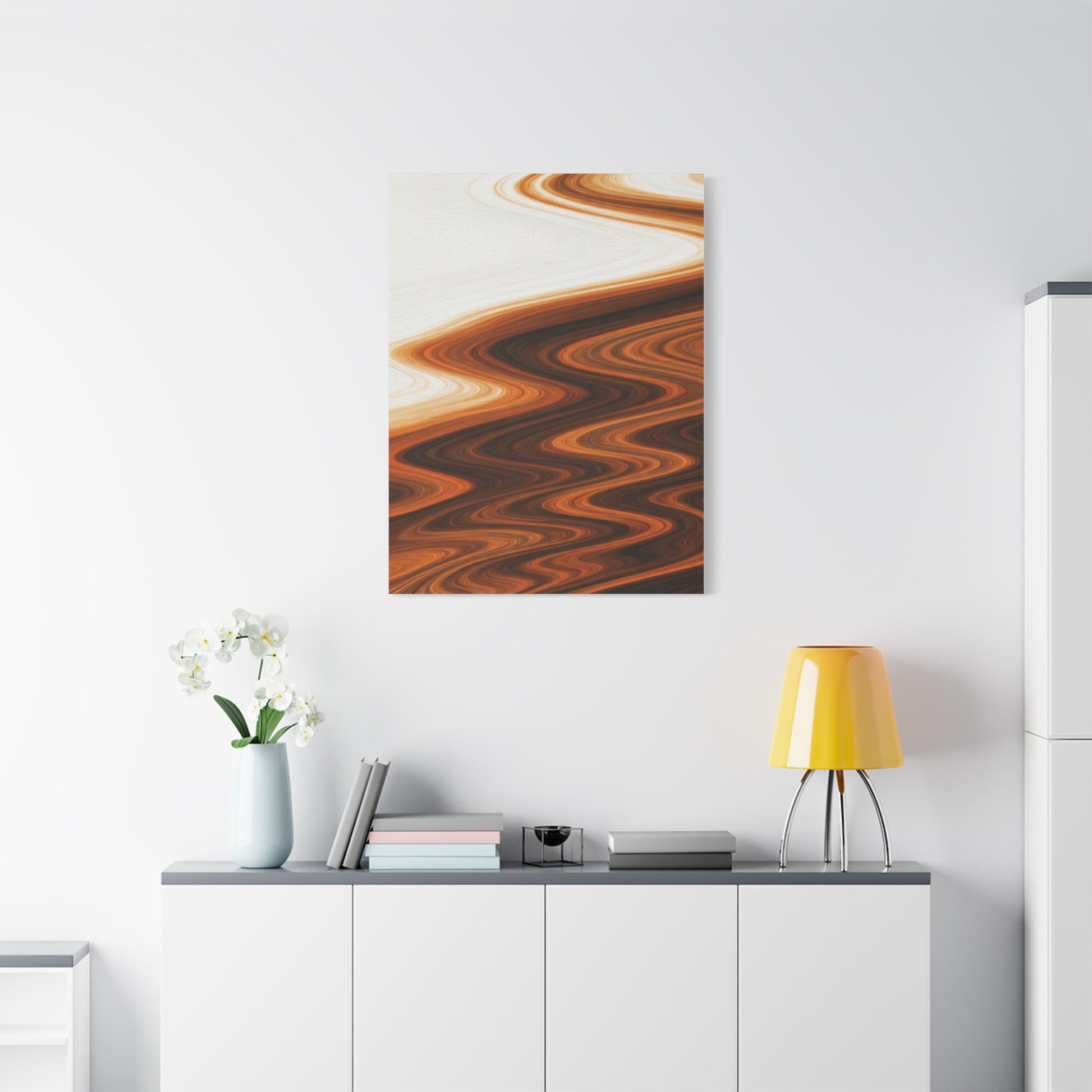 This refined abstract artwork features gently rippling waves of warm brown, amber, and cream tones flowing across the surface. The smooth, organic pattern creates a calming sense of rhythm and depth, making it ideal for modern interiors that value subtle movement and natural warmth. A perfect choice for living rooms, offices, or minimalist spaces seeking understated elegance.