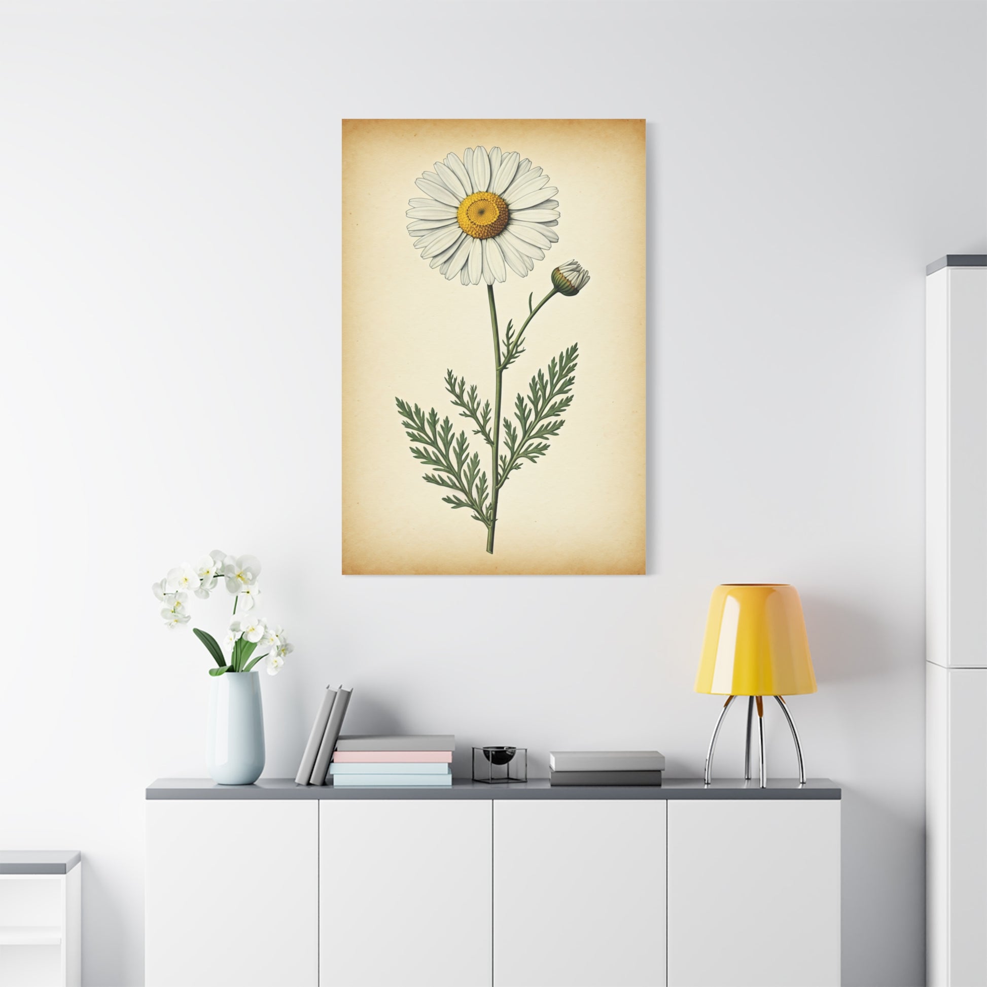 This delicate daisy illustration celebrates simple natural beauty through fine detailing and soft organic tones. The flower’s gentle petals and textured center are rendered with vintage inspired accuracy. A warm, lightly aged background adds character and timeless charm. Symbolizing purity and renewal, this artwork brings freshness to any room. Perfect for kitchens, bedrooms, or cottage style interiors.