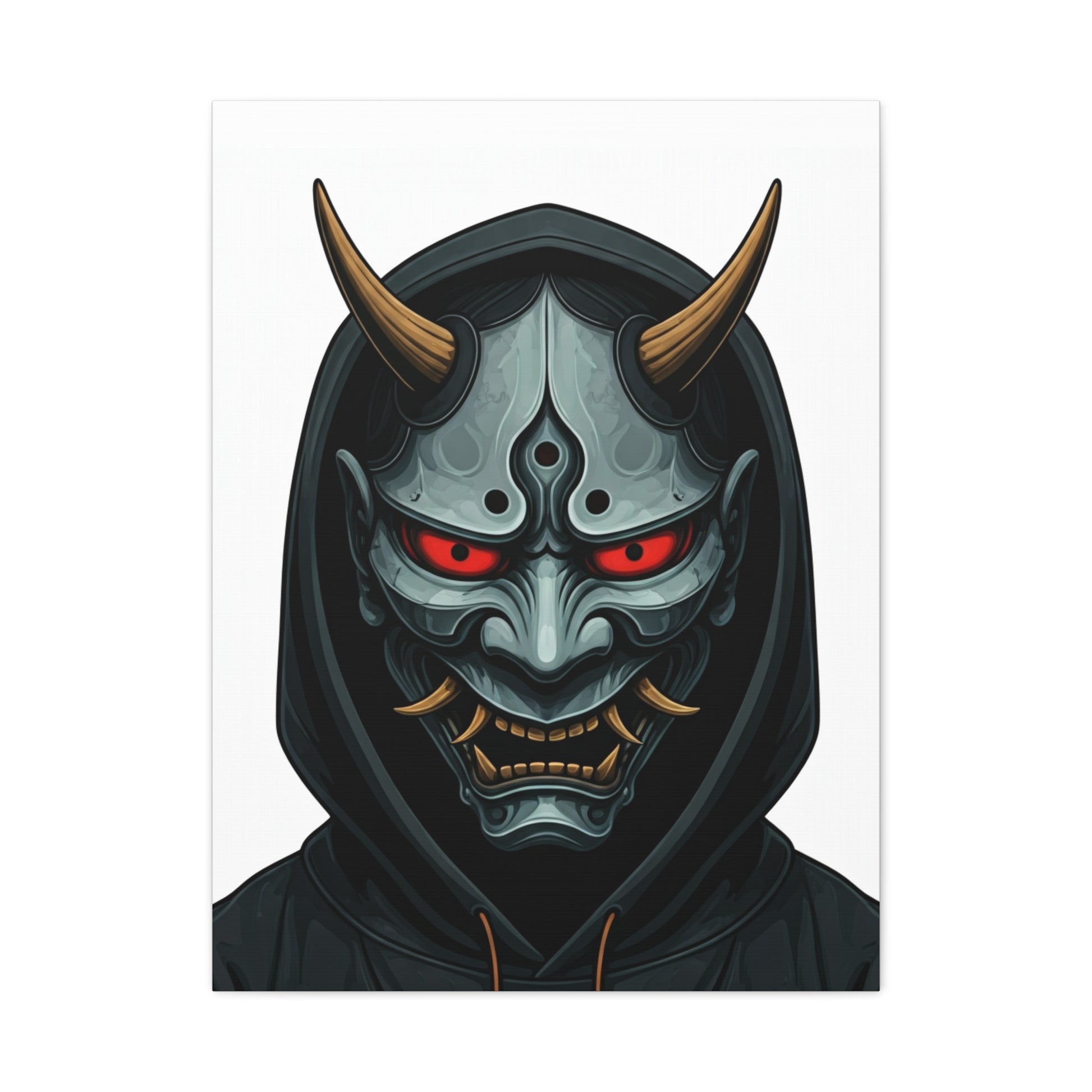 Hooded Demon Mask Wall Art & Canvas Prints feature a fierce demon face framed by a dark hood, with glowing red eyes and sharp horn details that create an intense, commanding presence. The symmetrical design and metallic textures give this artwork a powerful, modern edge while maintaining clarity and focus. Ideal for game rooms, studios, man caves, or interiors that embrace bold and dark aesthetics, this piece adds attitude and strength to any wall. The dramatic contrast and detailed expression make it a strong statement artwork without appearing chaotic. Printed using premium-quality materials and high-resolution inks, this wall art delivers crisp lines, deep tones, and long-lasting colour for a striking visual impact.