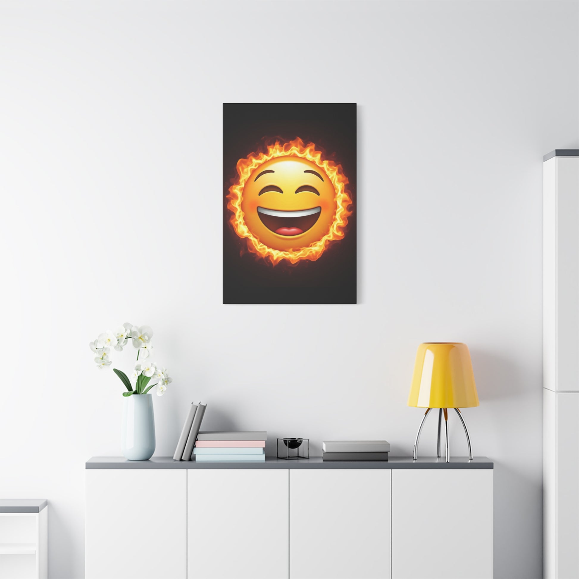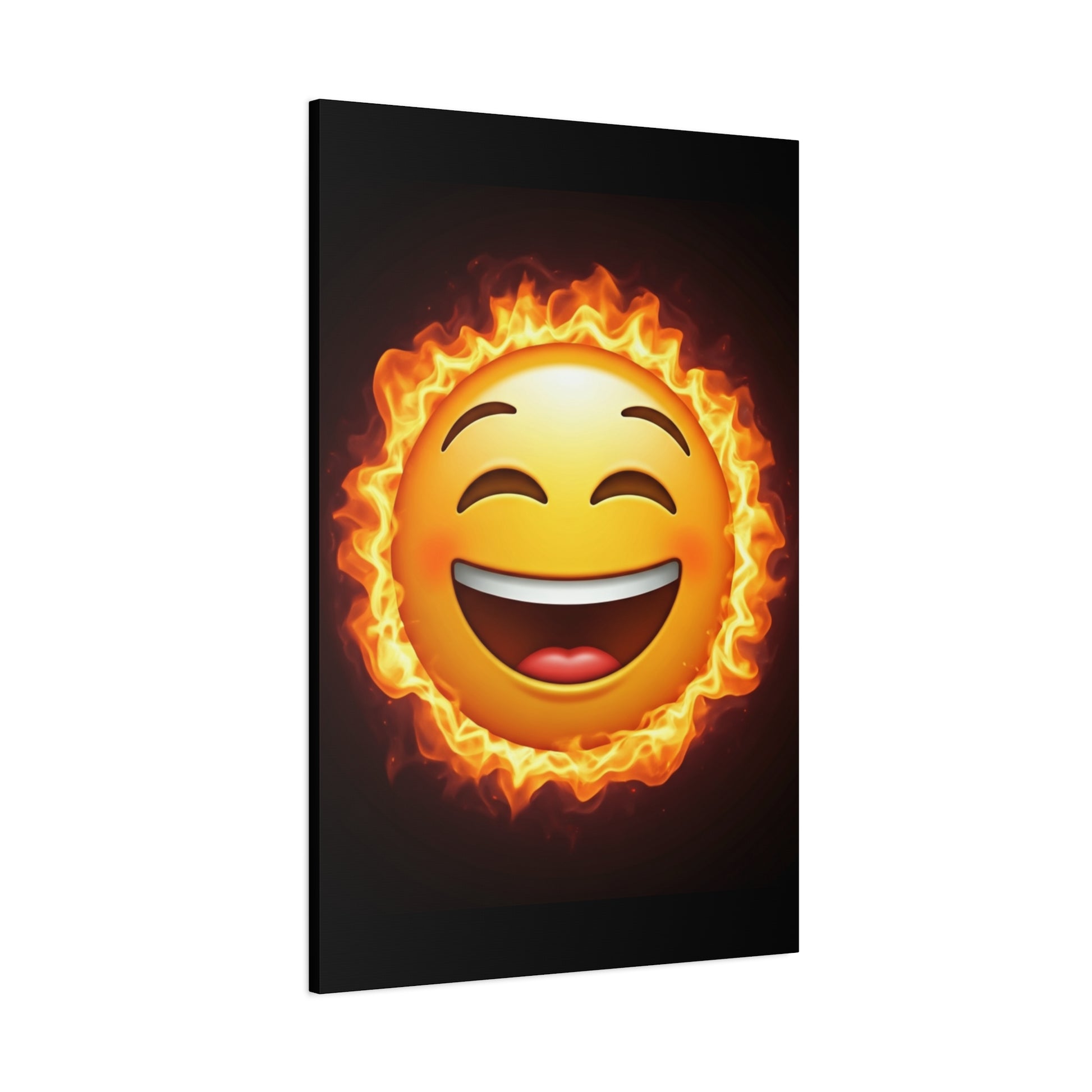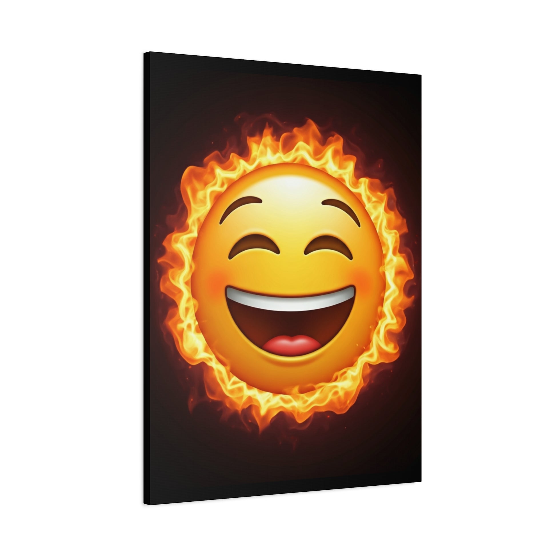 This vibrant canvas features a glowing, smiling emoji surrounded by a ring of fiery flames, radiating warmth, positivity, and playful energy. The bold colors and dynamic fire effect create a lively focal point that instantly brightens any space. Perfect for modern homes, creative studios, game rooms, or youthful interiors, this artwork adds fun, energy, and personality to your walls.