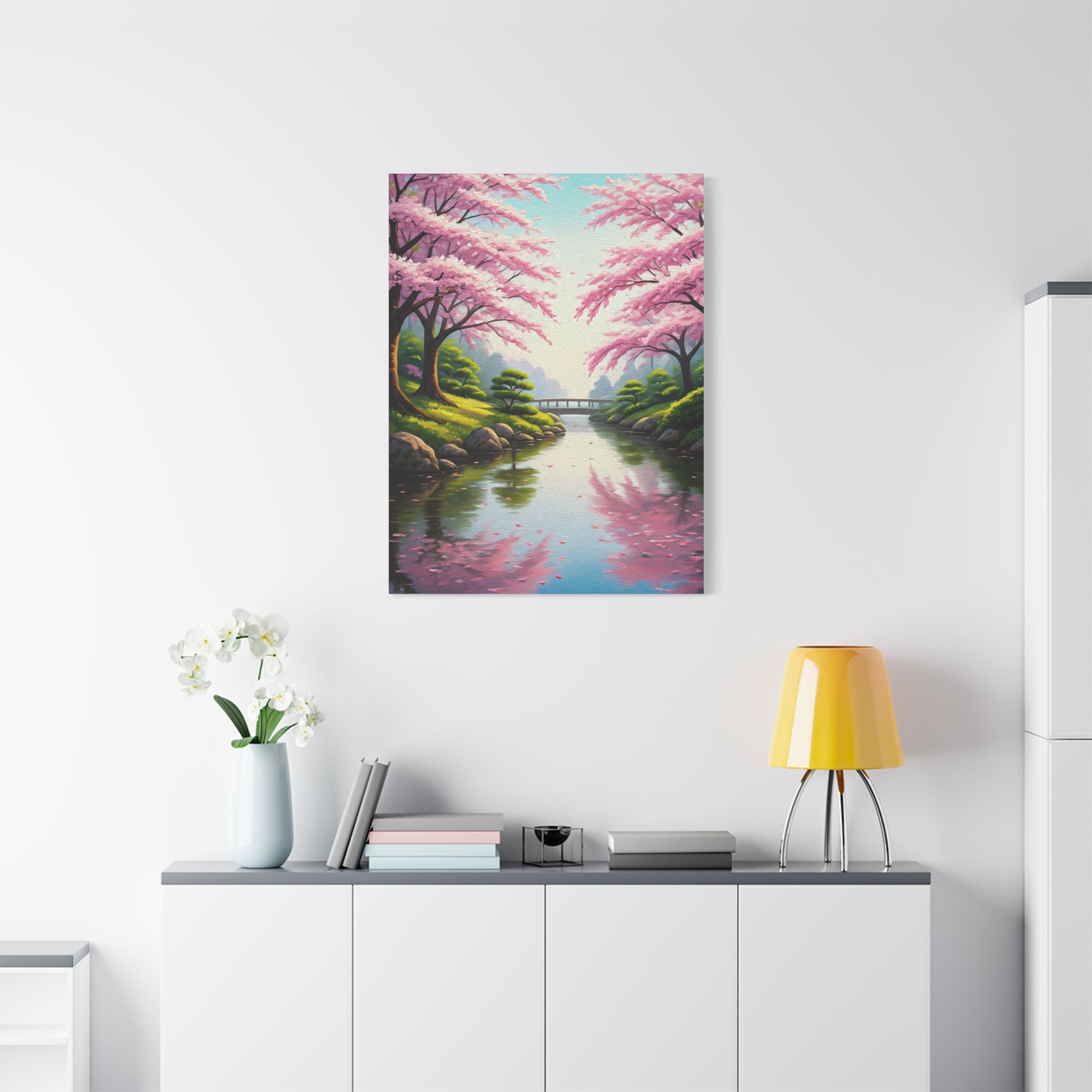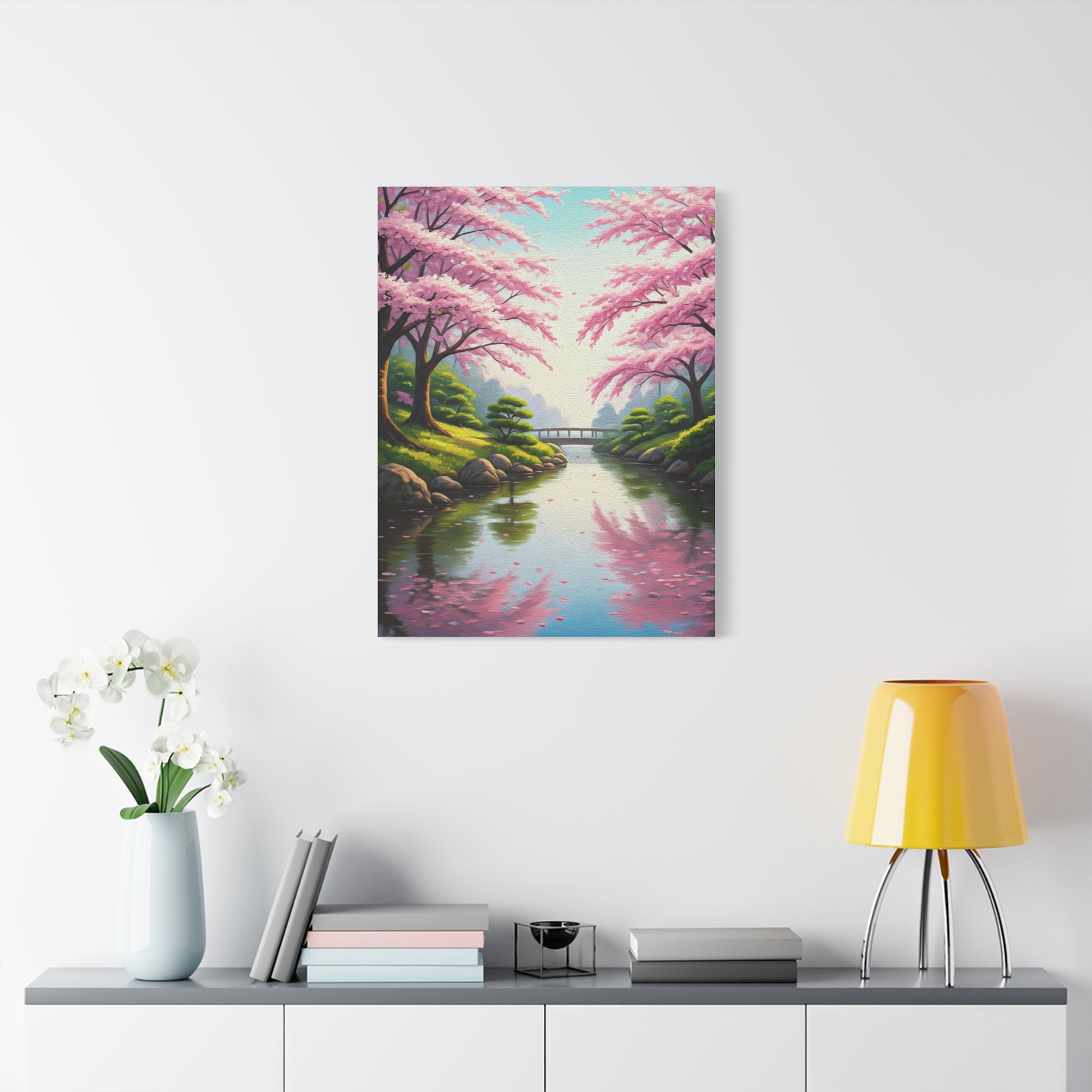 Sakura River Garden Reflection Wall Art & Canvas Prints