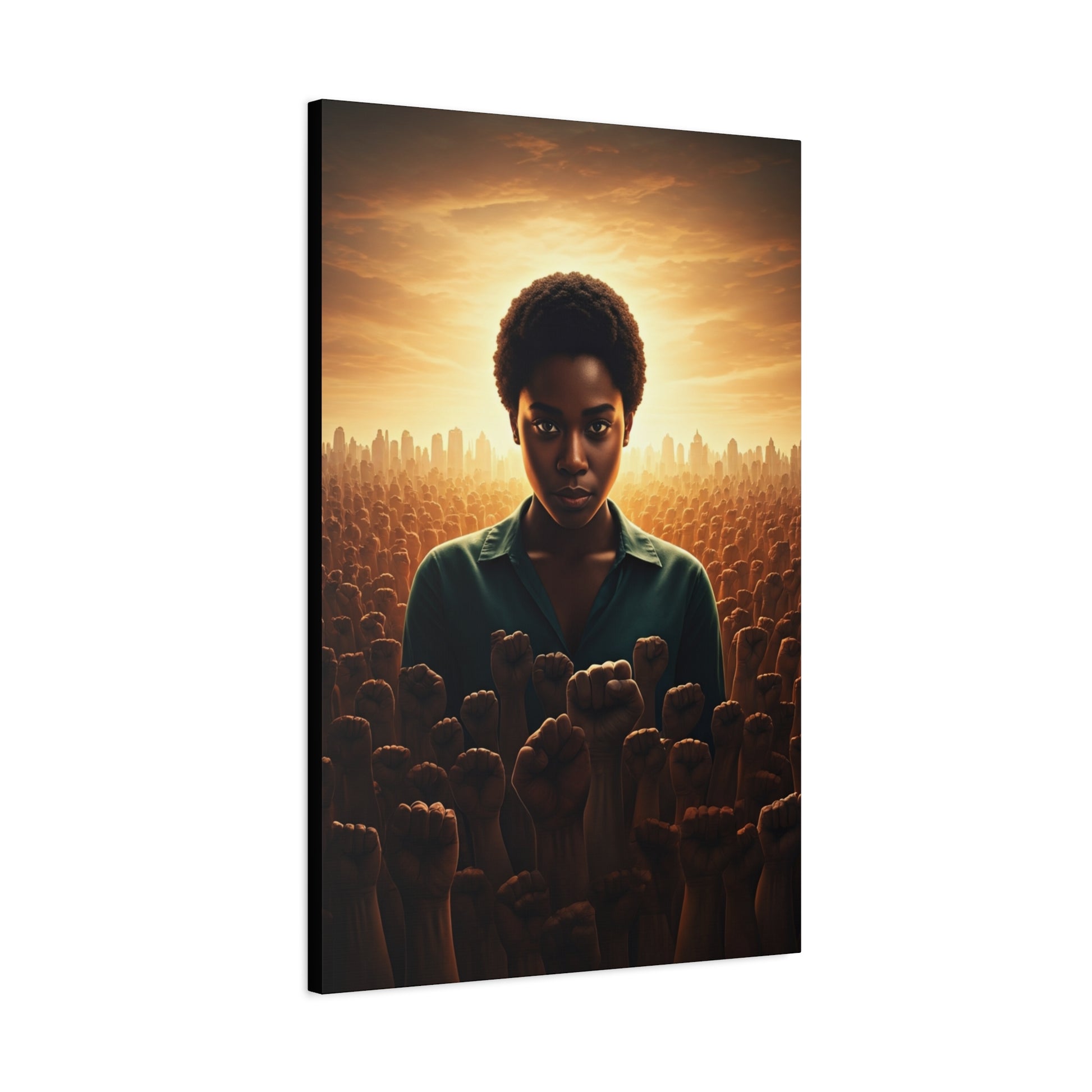 Strength in Unity Wall Art & Canvas Prints present a powerful portrait of resilience, leadership, and collective strength. The artwork features a commanding central figure standing before a crowd of raised fists, symbolising empowerment, solidarity, and the fight for justice. The warm, dramatic lighting and strong composition create an emotionally charged scene that speaks to courage, identity, and shared purpose. This piece is ideal for living rooms, offices, creative studios, or spaces that celebrate culture, voice, and social impact. Printed using premium-quality materials and high-resolution inks, this wall art delivers rich tones, sharp detail, and lasting depth, making it a bold and meaningful statement for any interior.