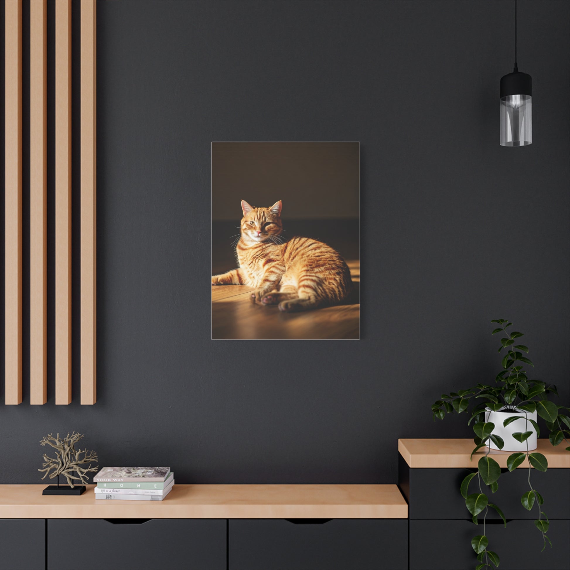 This elegant canvas features a relaxed ginger cat basking in warm natural sunlight, highlighting its soft fur and calm expression. The gentle shadows and earthy tones create a peaceful, cozy mood that brings warmth and quiet charm to any living space. Ideal for living rooms, bedrooms, reading corners, or minimalist interiors, this artwork adds a soothing and homely touch.