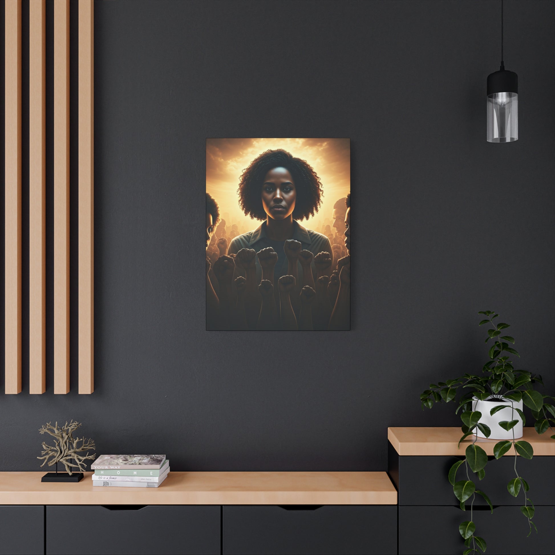 Voices of Power Wall Art & Canvas Prints portray a striking image of strength, resistance, and collective identity. The artwork centers on a powerful figure standing firmly as raised fists surround her, symbolising unity, courage, and the demand for change. Warm, dramatic lighting enhances the emotional depth of the scene, creating a bold and commanding presence that resonates instantly. This piece is ideal for living rooms, offices, studios, or spaces that celebrate empowerment, culture, and social awareness. Its strong visual narrative makes it more than décor—it becomes a statement. Printed using premium-quality materials and high-resolution inks, this wall art delivers rich tones, sharp detail, and long-lasting impact for a meaningful and inspiring display.