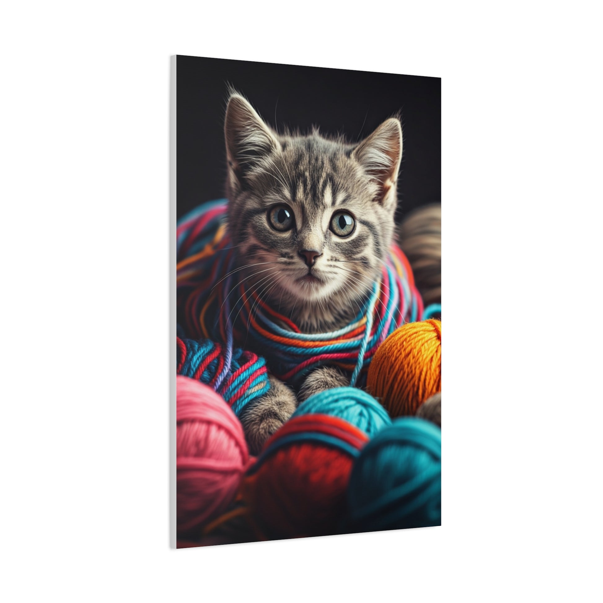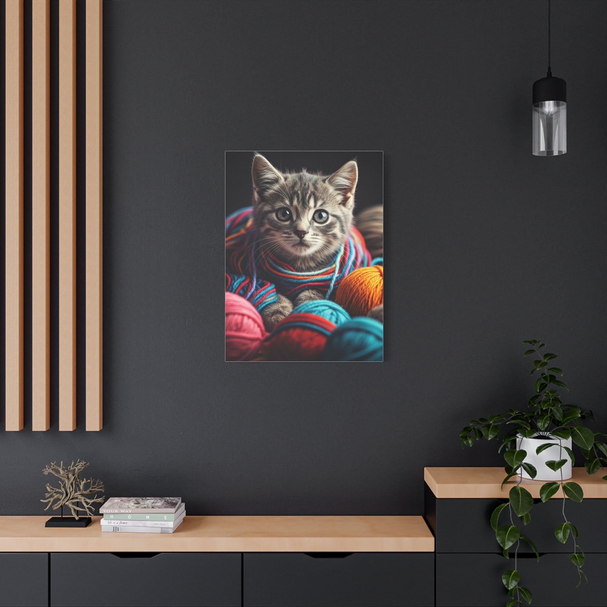 This charming canvas captures an adorable kitten nestled among vibrant balls of yarn, with expressive eyes and soft fur creating a warm, cozy, and playful atmosphere. The rich colors and fine details bring a sense of comfort, creativity, and joy, making it perfect for living rooms, bedrooms, nurseries, craft spaces, or pet lovers’ interiors.